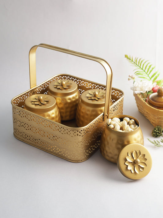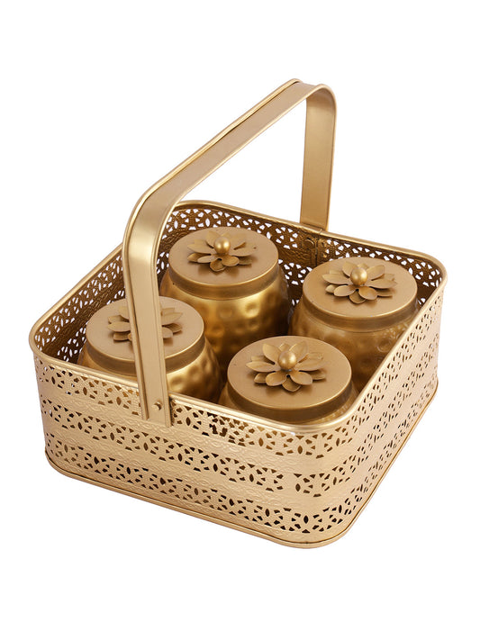 Brass & Glass Water Jug with 4 Brass Tumblers Set
