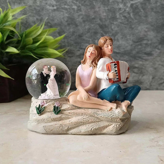 Resin Couple with Crystal Ball Showpiece