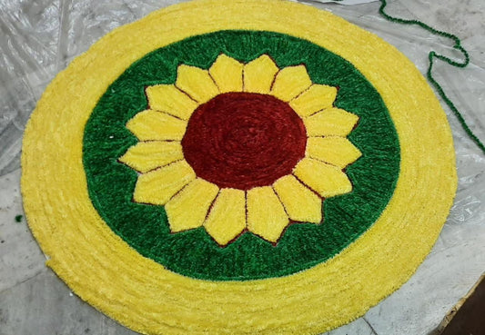 Handwoven Woolen Floral Design with yellow and Red Rangoli Mat