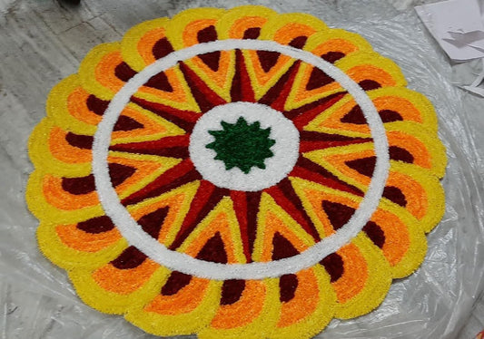 Vibrant Yellow with Red, Orange and White Floral Rangoli Mat