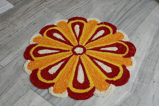Handwoven White, Red, Yellow Floral Rangoli Mat