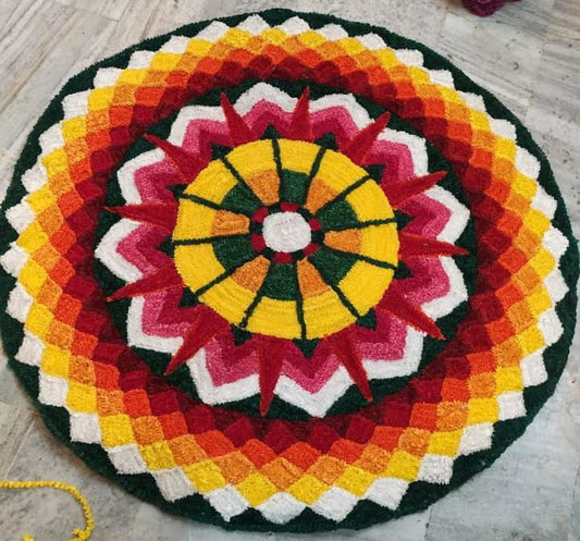 Handwoven Vibrant Color Floral and Violet Petals Rangoli Mat
