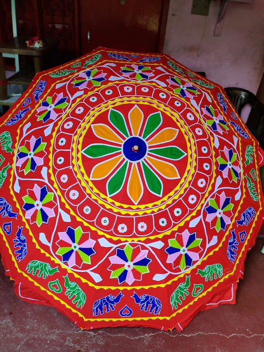 Yes, many of our decorative umbrellas are handcrafted by skilled artisans using traditional methods. Each piece is unique and showcases authentic Indian craftsmanship with intricate embroidery, patchwork, and mirror detailing.