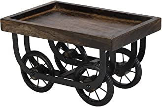 Thela is symbolic of abundance and this one is only for you - personal. . Each unit is handcrafted with the tray carved out of Mango Wood and the Base including Wheels casted out of Iron. Each tray is beautifully unique given the kaleidoscope range of colours and patterns in it's grain. The cart is symbolic and handcrafted so might have limited movement on the wheels. Further, since the wheels are casted from Metal so may not be advisable to move on the wooden surfaces. The tray can be placed at the centre of the dining table or at arms length on the floor directly in case of low seating arrangement. Use butter paper / silver foil / tissue before putting snacks in platter to avoid oil stains. Clean it with dry wet sponge. This can also be used as a showpiece with your loved display things placed on the top or even as an organiser for daily use items on the top. It also goes very well as part of the food spread with maybe varieties of chutnies or cheese spread or to serve variety of breads. The top comes in a compact size of 9.5x6.5 inches & is 6 inches tall. The sturdy & robust unit weighs around 750 grams.