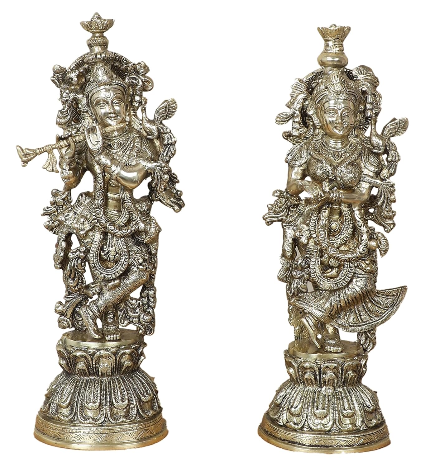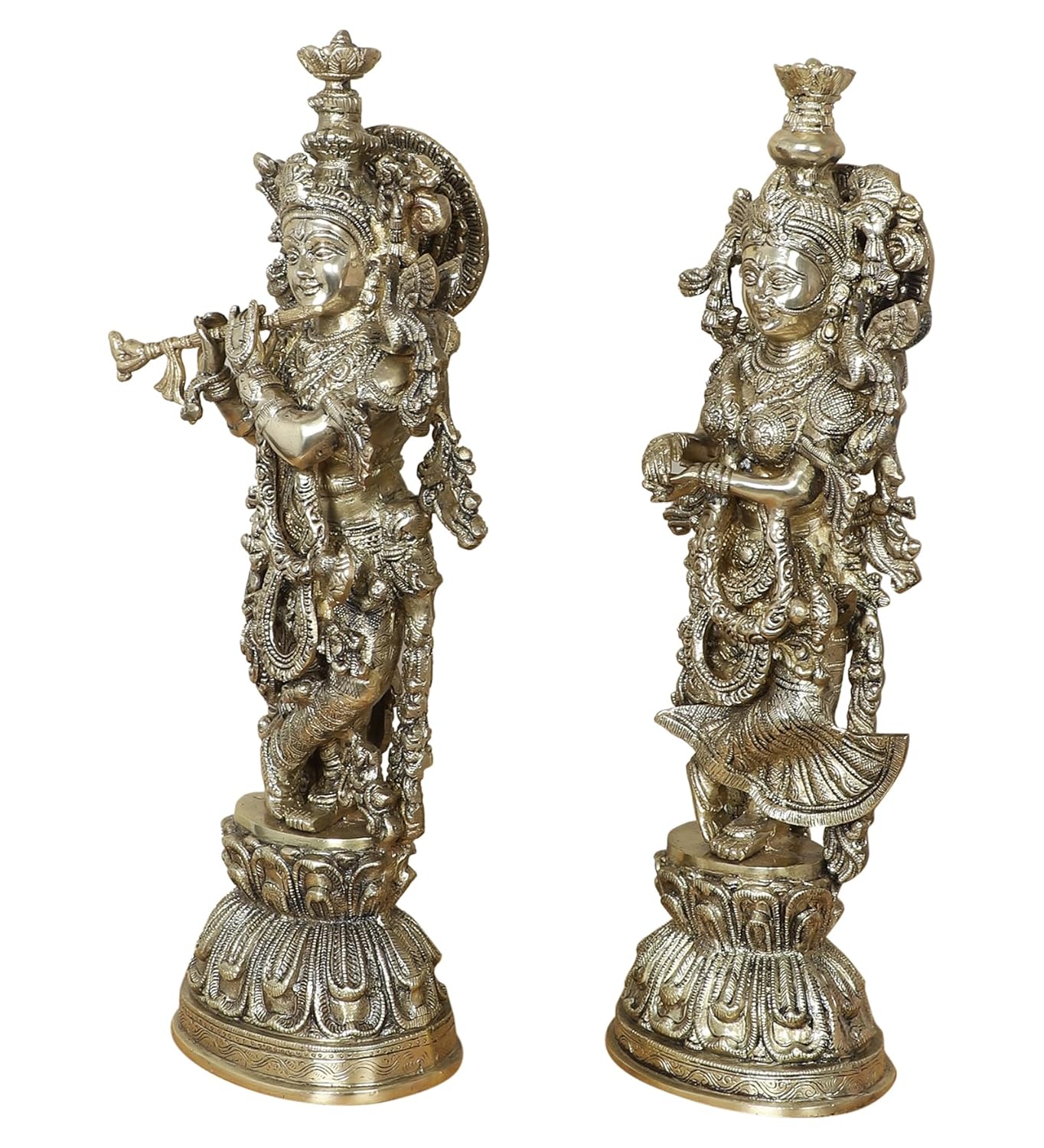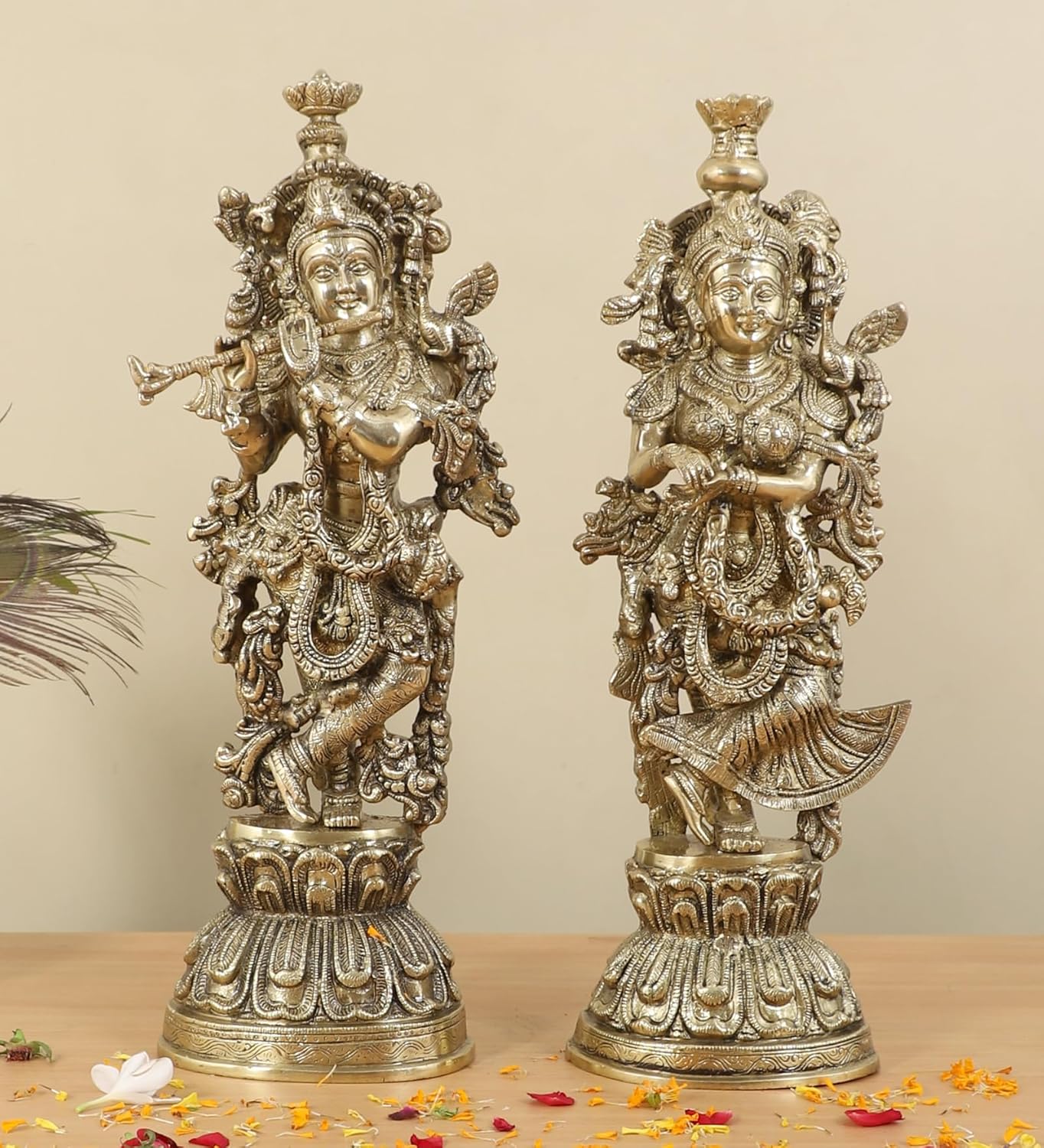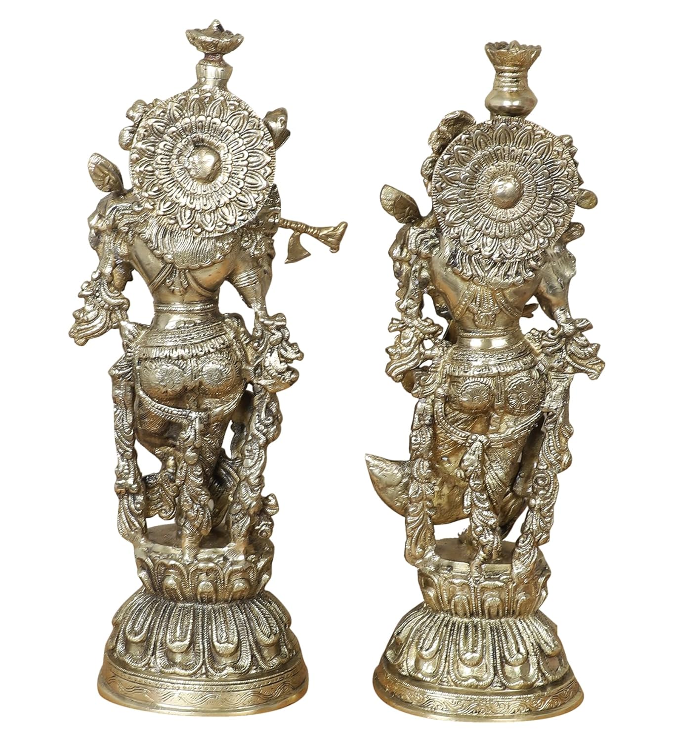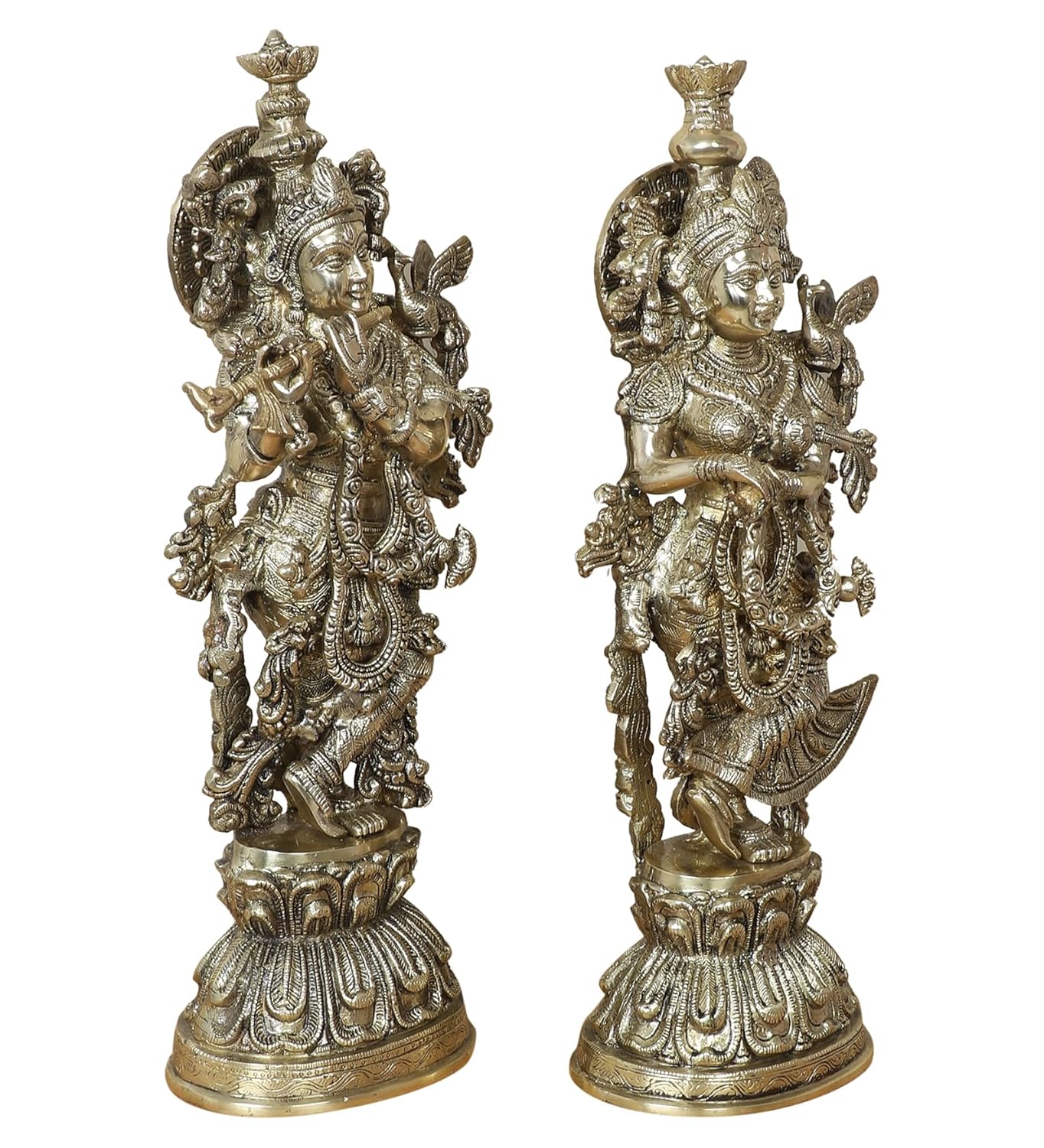 Crafted from high-quality brass, this statue enhances the spiritual ambiance of your home, puja room, or temple. Its antique finish adds a vintage charm, making it a unique centerpiece for your decor. Whether for daily worship, festive celebrations, or as a thoughtful gift, this Radha Krishna statue is a symbol of peace, positivity, and divine blessings.