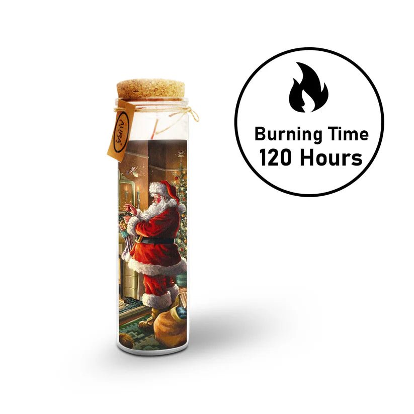 Decorative Jar: Encased in a high-quality, clear glass jar, the candle showcases the intricate Santa figure, making it a beautiful decorative piece even when not lit.