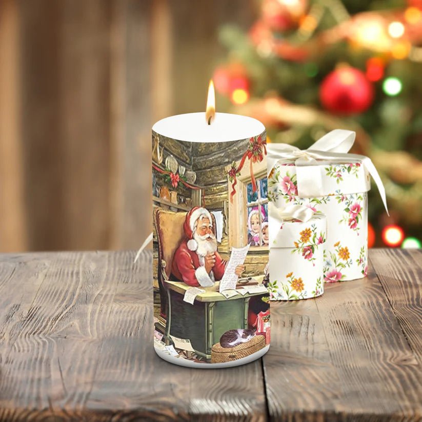 AuraDecor Unscented Christmas Santa Reading Note Pillar Candle