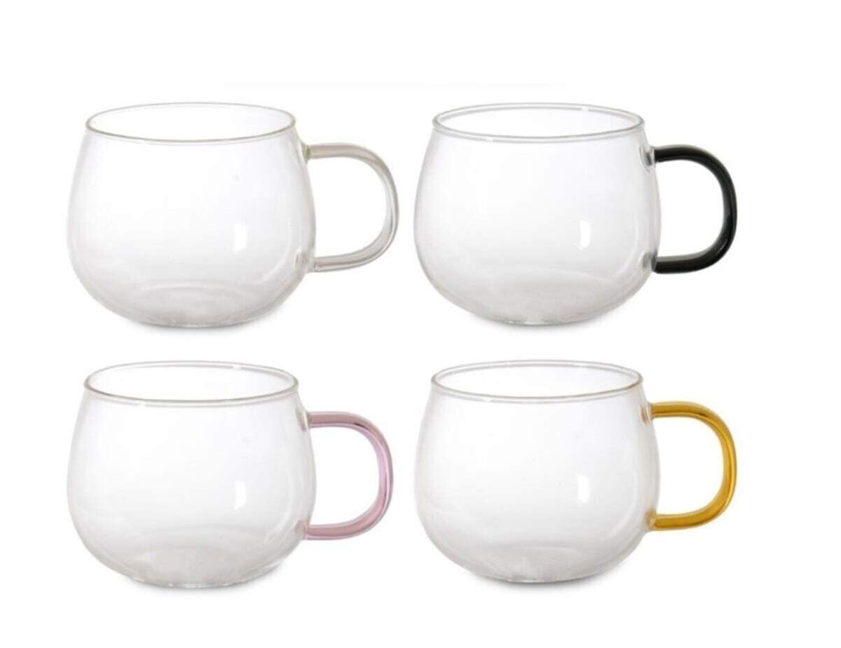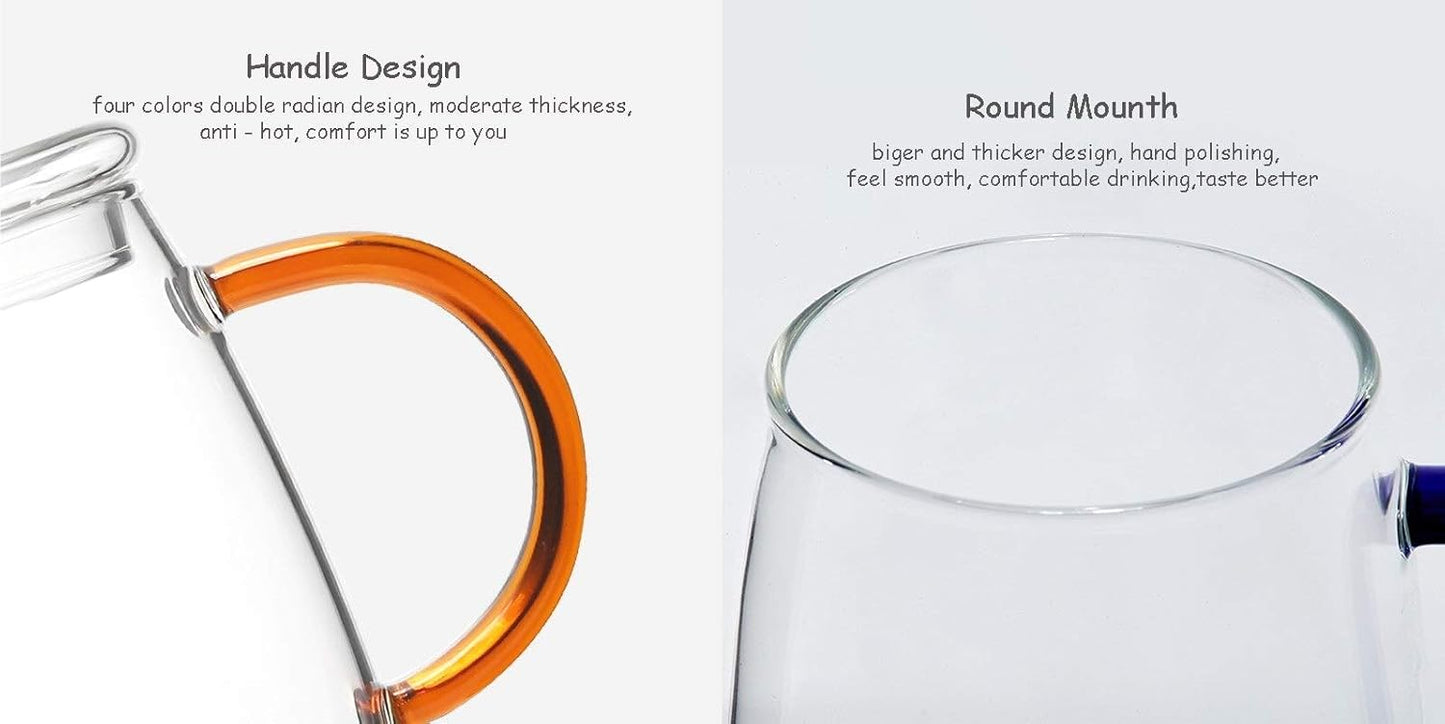 Borosilicate Glass Tea Coffee Cup Mug Set with Colorful Handle