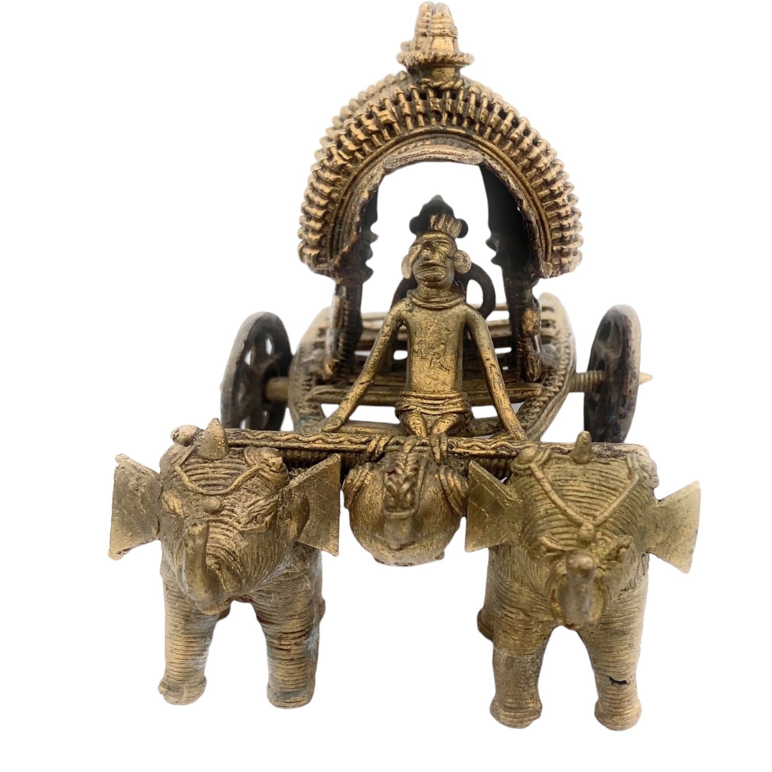 Crafted from high-quality brass, this Bullock Cart Showpiece adds a touch of traditional elegance to any room. Its intricate design and craftsmanship highlight the rich cultural heritage of India. Display it on a shelf or use it as a statement piece on your desk, either way, it is sure to impress.