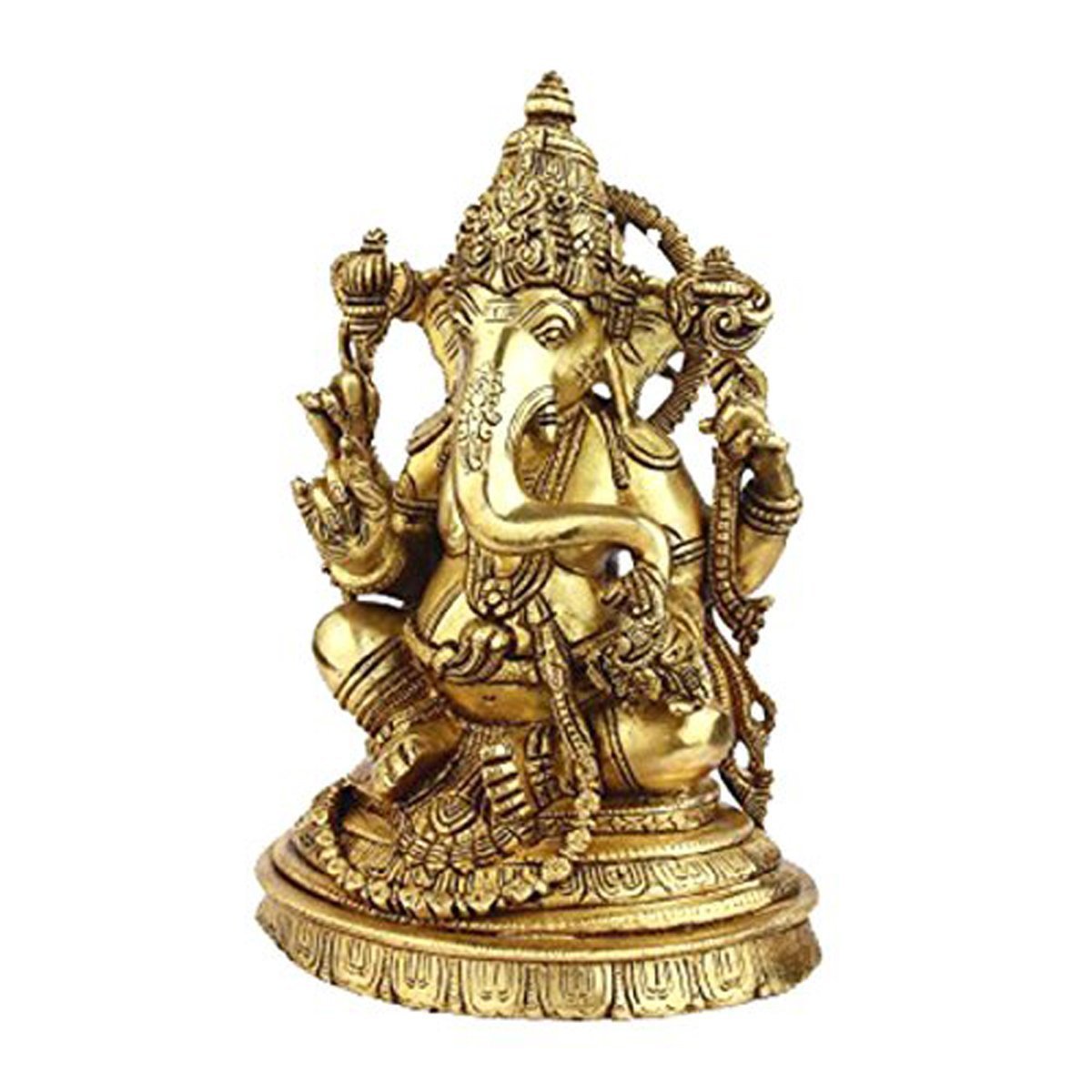 Depicts Ganesha seated in a serene and auspicious posture, symbolizing wisdom and peace.