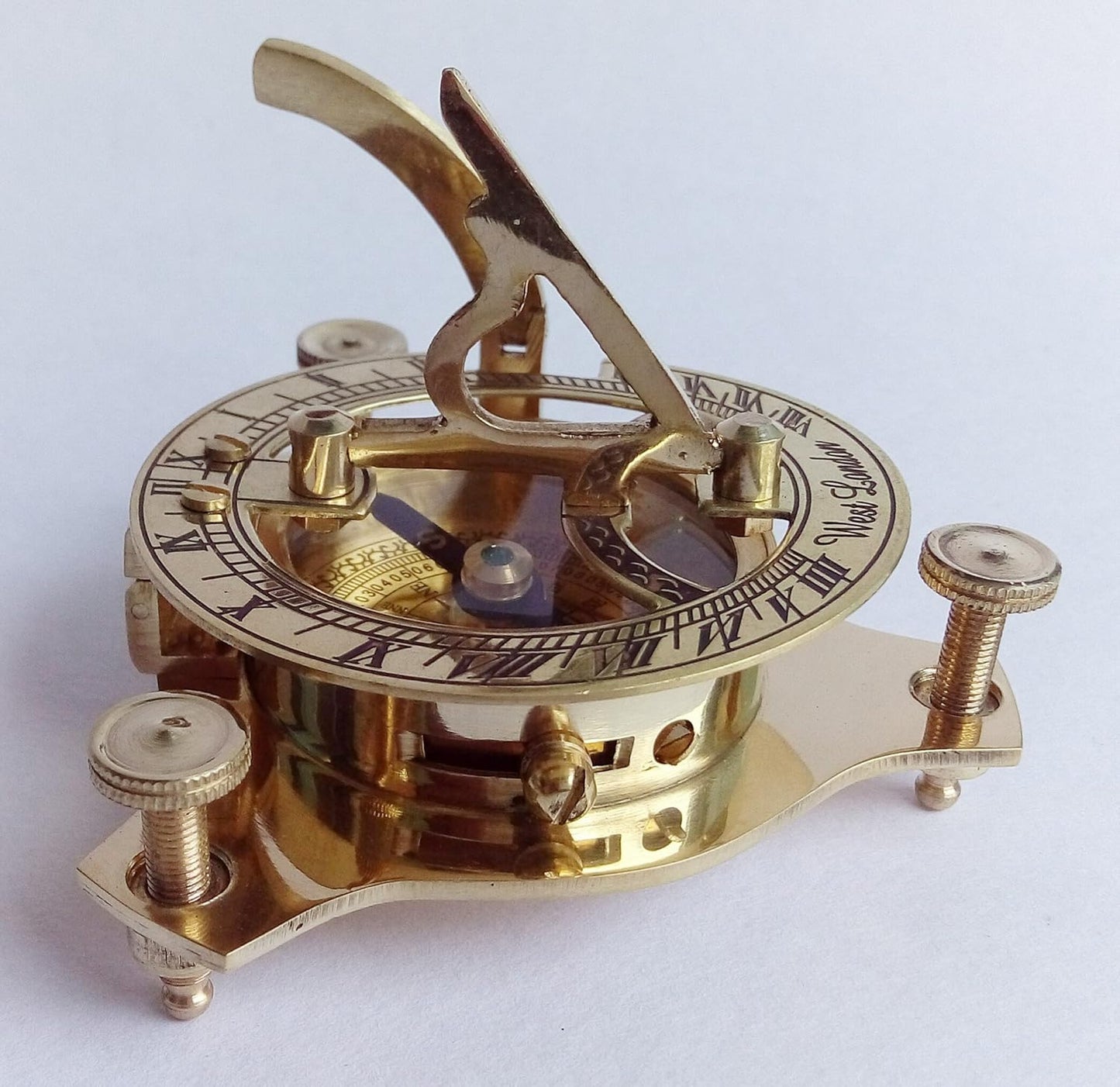 Brass & Glass RELIABLE READING With precision dial, you can easily read out through this compass. The numbers and text available are big. It will never leave you guessing in which direction you are going. sun clock for brass.