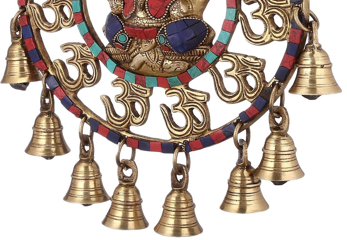 Infuse your home with divine energy and cultural elegance with the Brass Multicolor Om Ganesha Wall Hanging with Bells.
