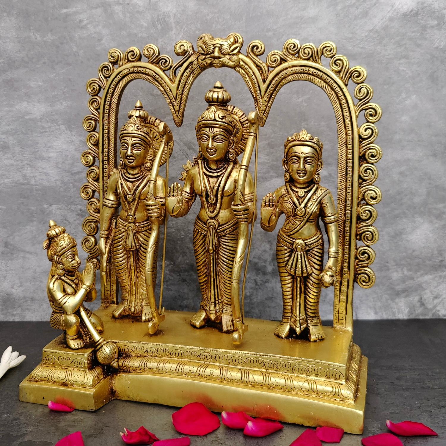 The Brass Ram Darbar Frame Idol is a beautiful symbol of devotion and harmony. Made with high-quality brass this 12-inch idol captures the divine presence of Lord Ram Mata Sita Lakshman and Hanuman.