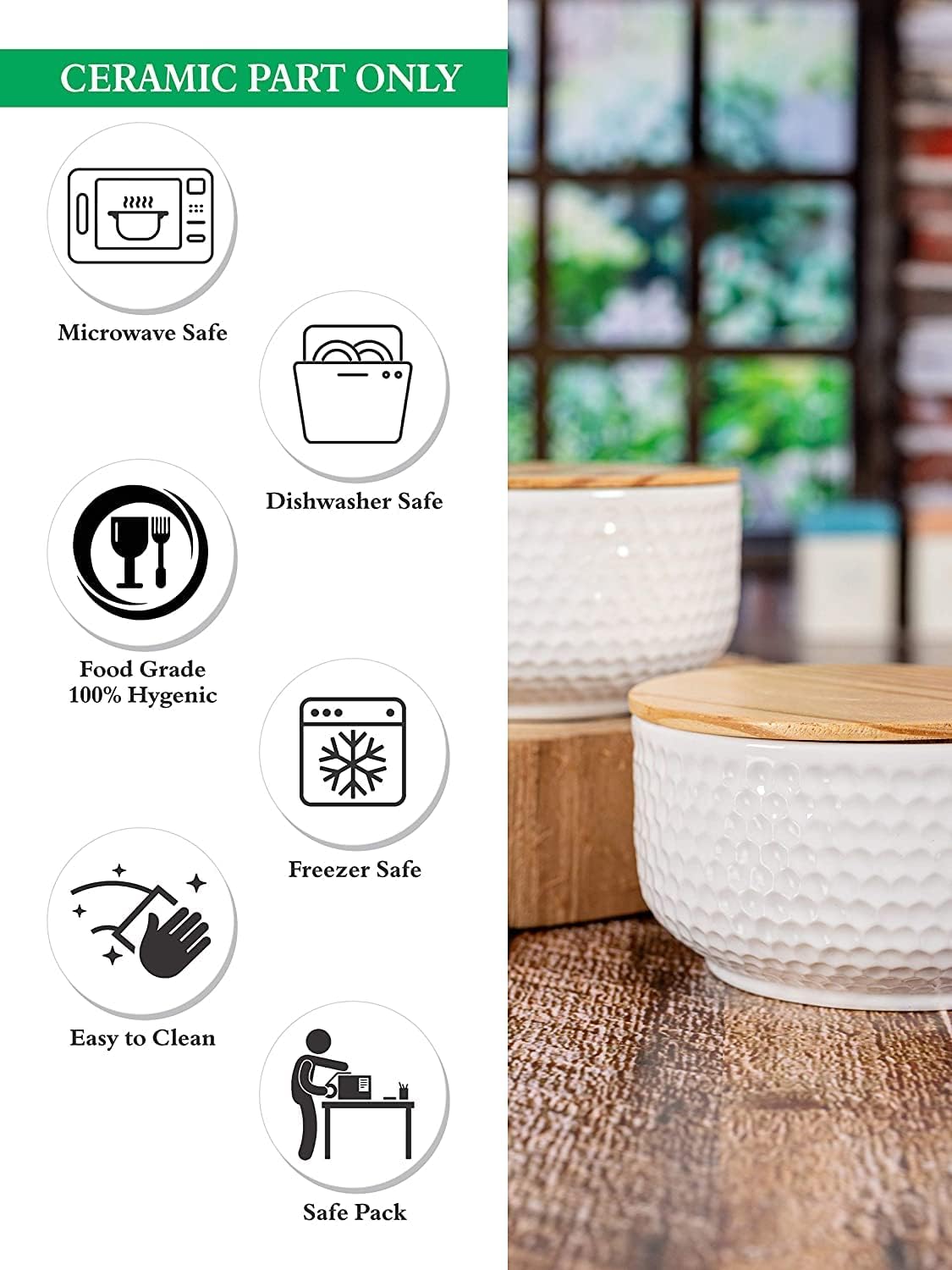 Easy Maintenance: Ceramic bowls are dishwasher and microwave safe (without the lid).