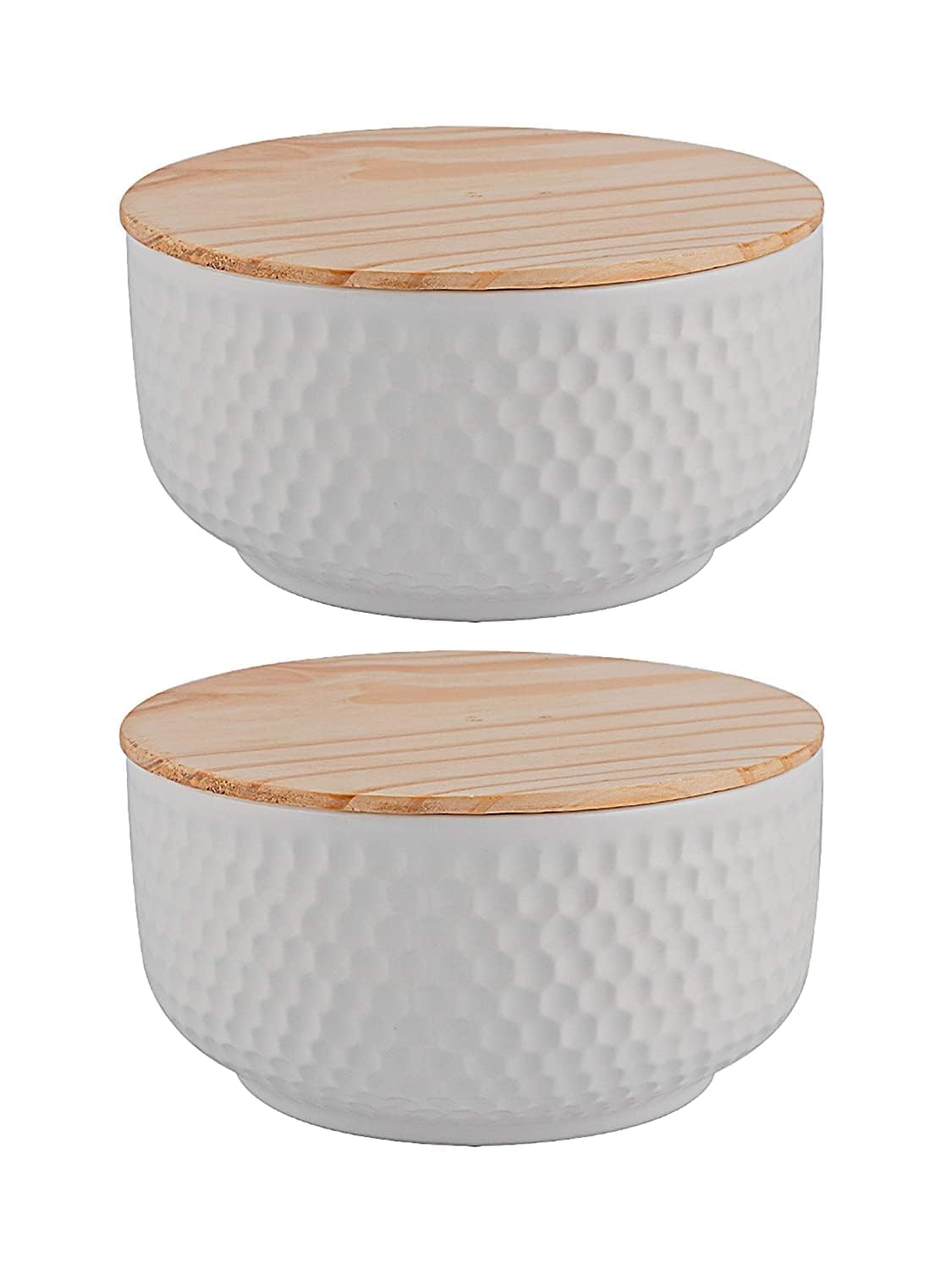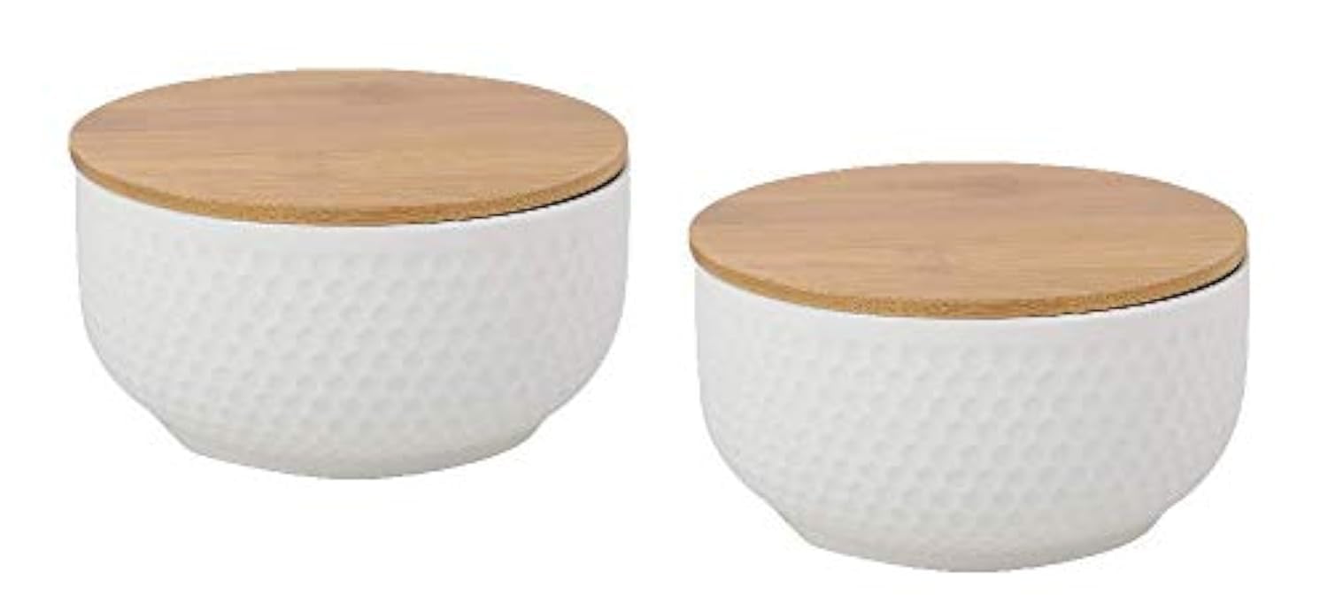 Set Includes: Bowls: 2 ceramic bowls of varying sizes for serving and storage.