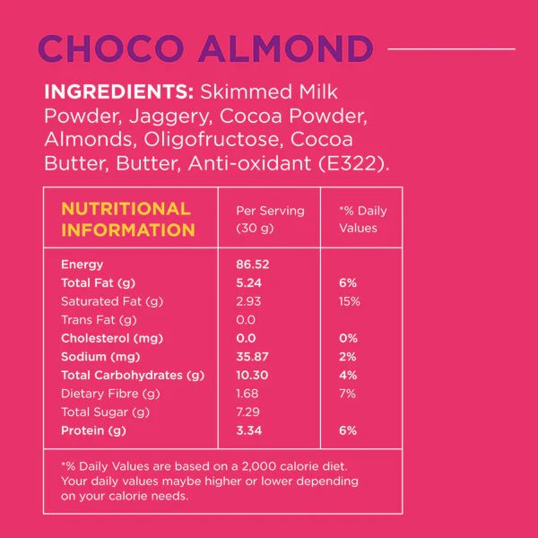 Skimmed Milk Powder, Jaggery, cocoa Powder, almonds