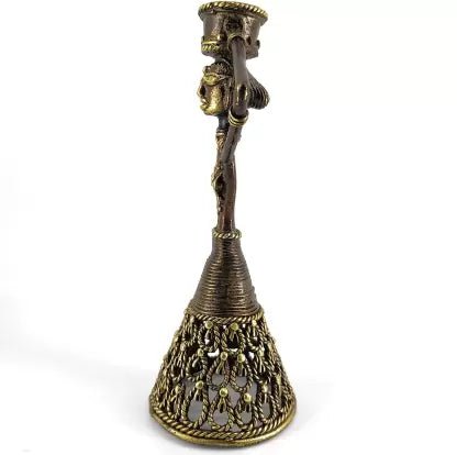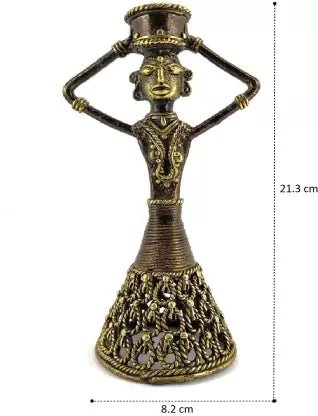 Illuminate your spaces with the timeless beauty of the Dhokra Craft Tribal Lady Candle Holder, a stunning blend of art and functionality. This handcrafted piece showcases a tribal lady holding a candle holder, epitomizing the elegance and authenticity of the ancient Dhokra lost-wax casting technique.
