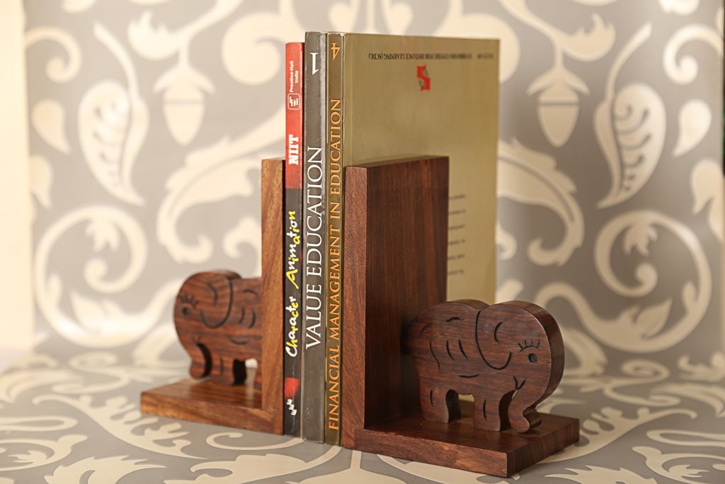 Elephant HandCarved Bookend In Sheesham Wood For Home Decor & Gift