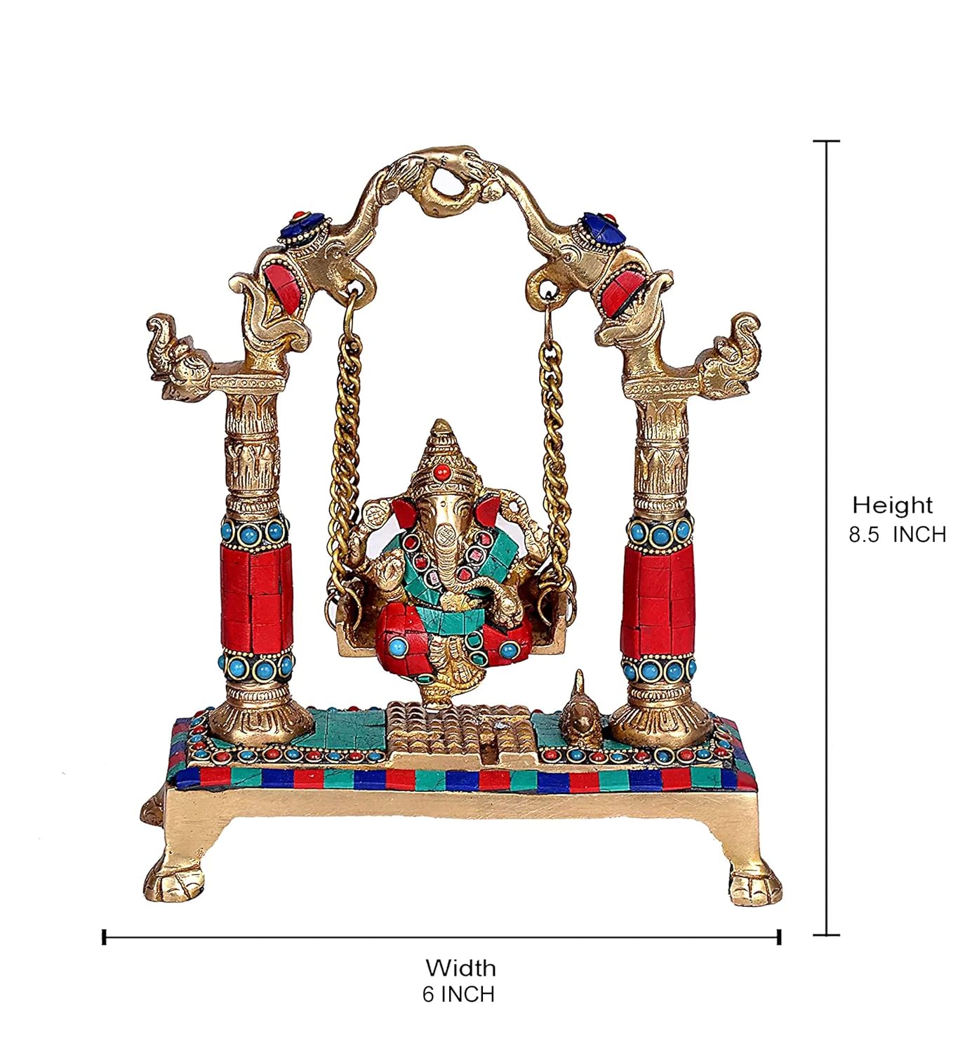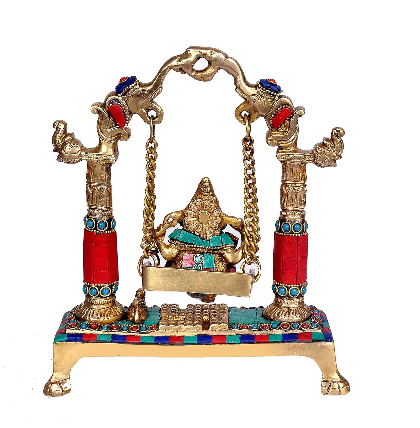 Ganesha Swing Statue Ganpati Jhoola Kirtimukha Idol Murti for Home Décor Office Mandir (Height 8.5 Inches)