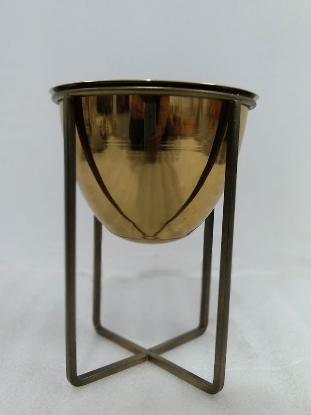 Golden Bowl Table Planter Pot for Living Room with Iron Crossed Stand
