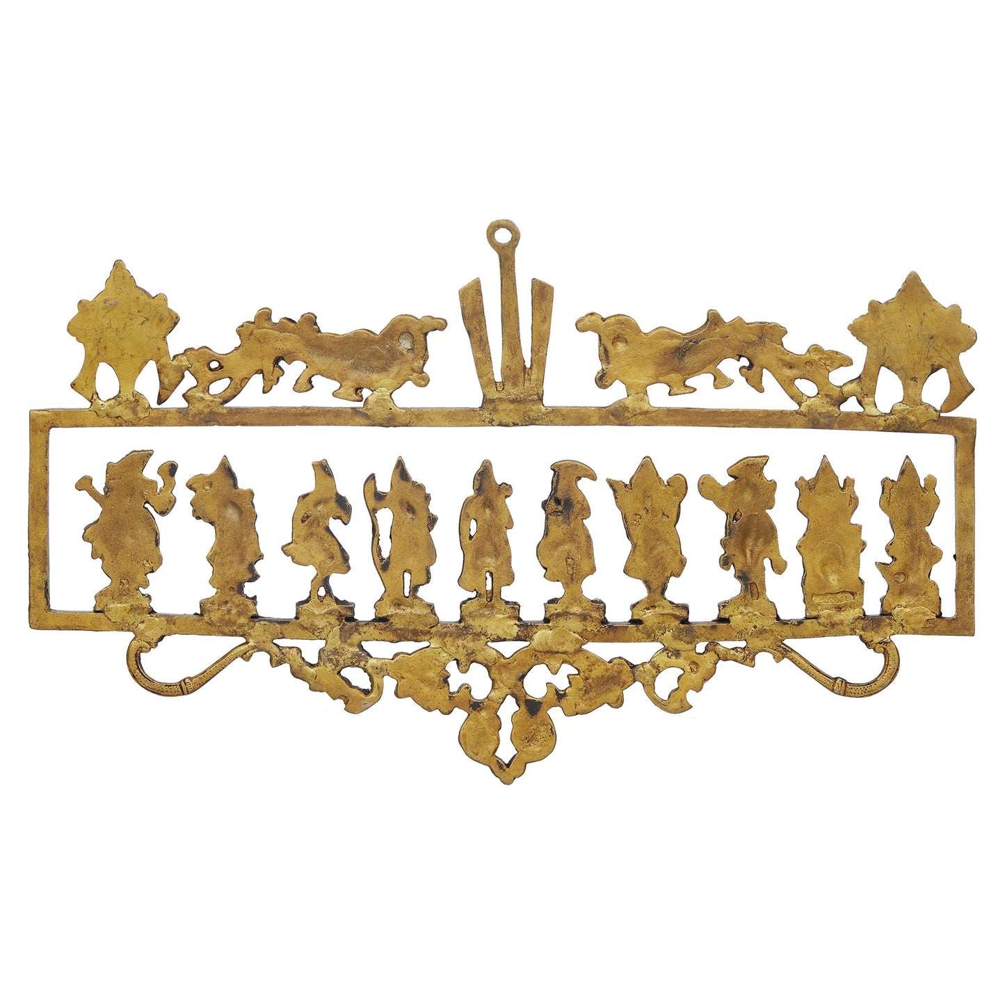 Illuminate your spiritual space with our Golden Brass Vishnu Dashavatara - Ten Incarnations of Lord Vishnu Religious Wall Hanging, a divine masterpiece that narrates the timeless tales of Vishnu's avatars. Perfect for your puja room or as a statement piece in your living area, This intricately crafted wall hanging embodies divine protection and blessings.