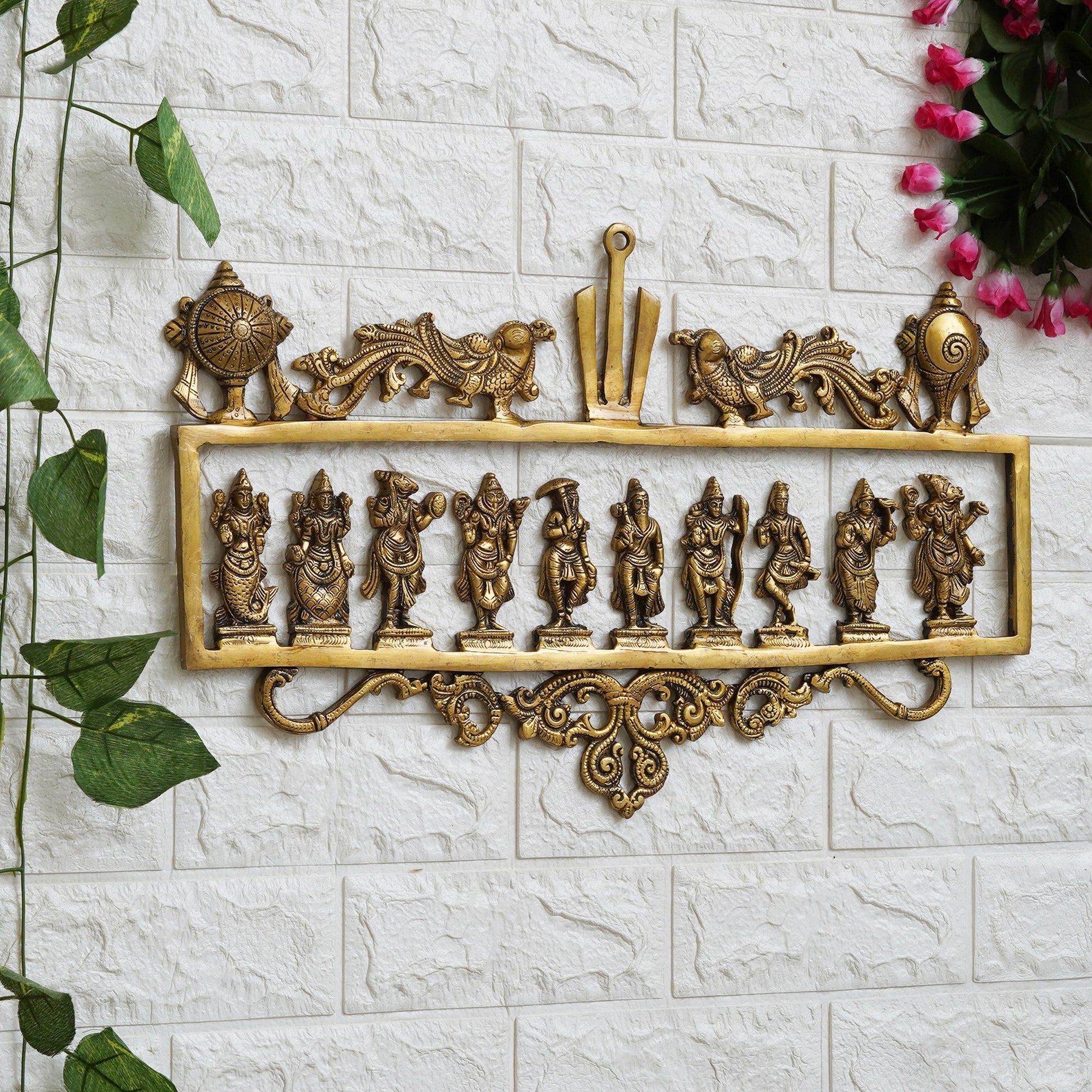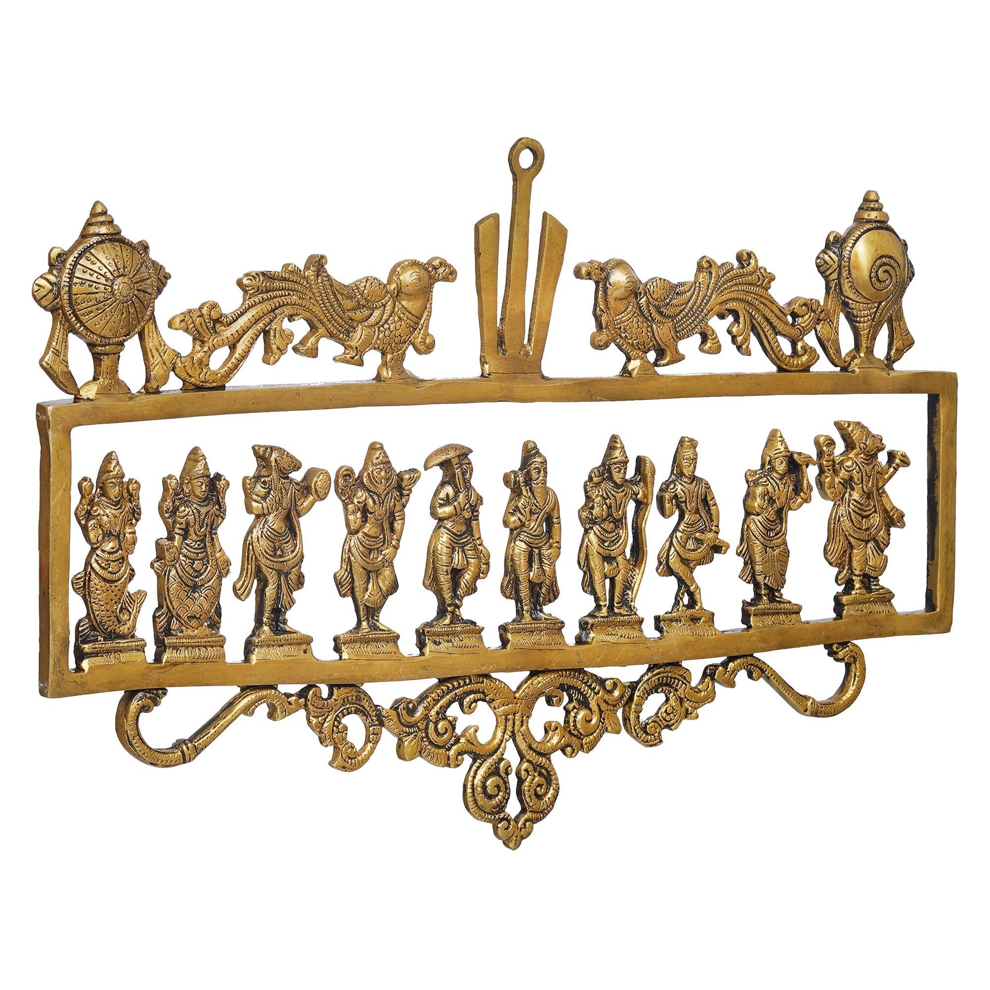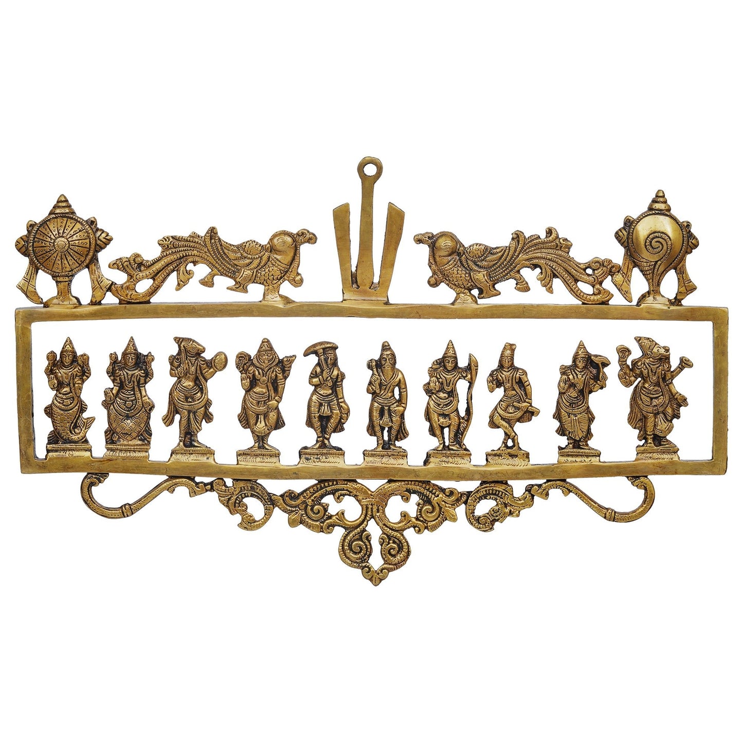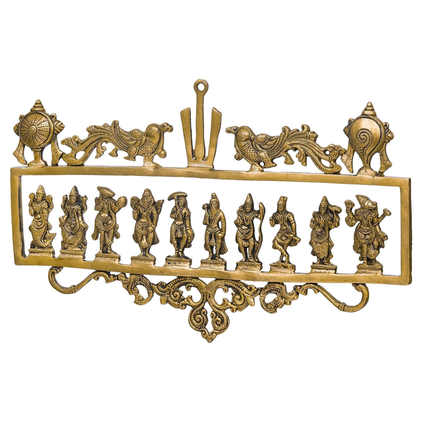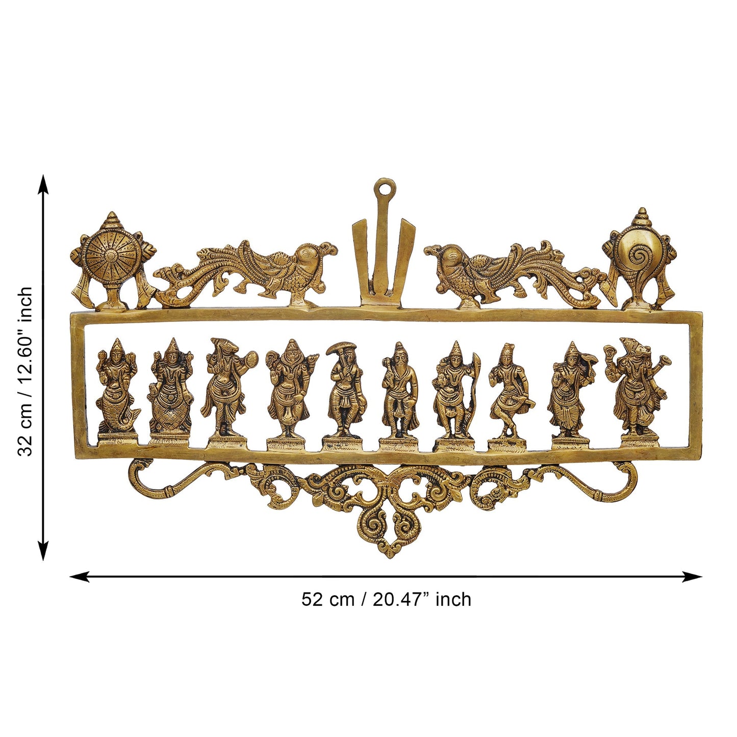 1 Golden Brass Vishnu Dashavatara - Ten Incarnations of Lord Vishnu Religious Wall Hanging |