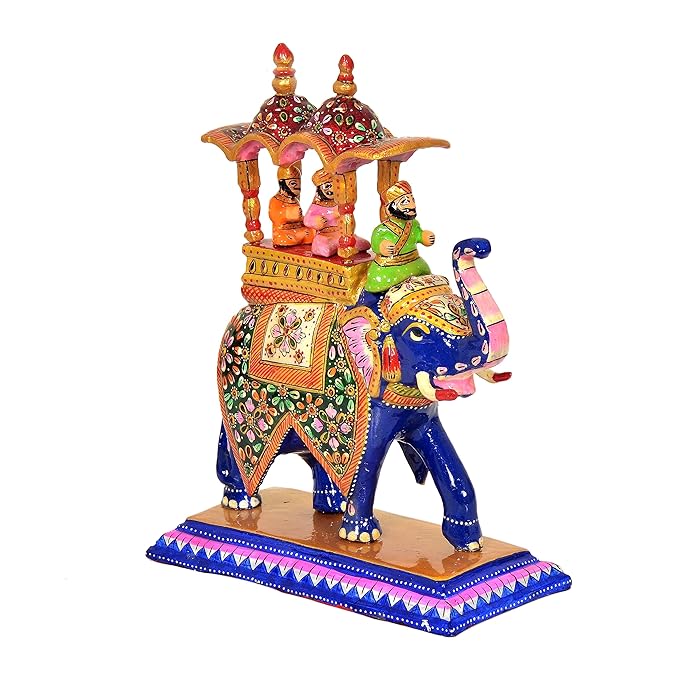 The elephant symbolizes power, wisdom, and prosperity, while the Ambari adds a regal touch, reminiscent of royal processions from ancient India. Each piece is carefully hand-painted, ensuring no two are exactly alike — a true testament to authentic Indian craftsmanship.