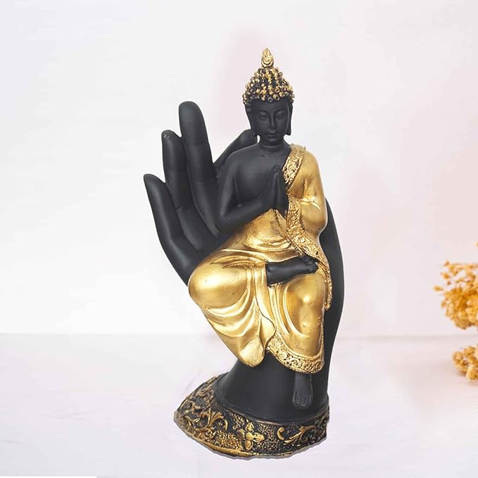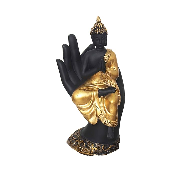 Adding a Hand Buddha Statue Showpiece idol to your home can bring many benefits. It can make your home look more beautiful. The idol can create a peaceful atmosphere. It can reduce stress and help you relax. When you see the Hand Buddha idol, you may feel a sense of peace. A Hand Buddha idol can also be a source of inspiration. It can remind you to stay positive and focused on your goals. It's a great religious and a thoughtful gift for any occasion. It can be placed in a living room, pooja room, home, office, or any other space to create a calming atmosphere.