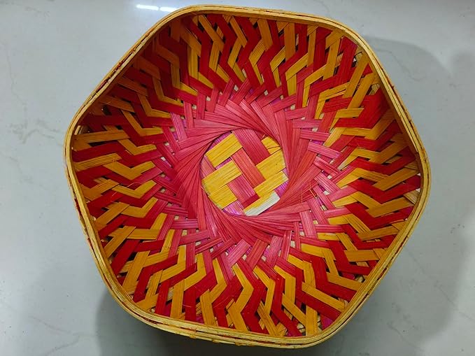 This handcrafted bamboo basket set features a charming pink color, adding a touch of warmth and elegance to any space. The set includes two baskets, each meticulously crafted with skill and precision. The natural bamboo material lends a rustic and eco-friendly feel to the baskets, making them not only functional but also environmentally conscious. The pink hue adds a playful and stylish element, making these baskets a delightful addition to your home decor.
