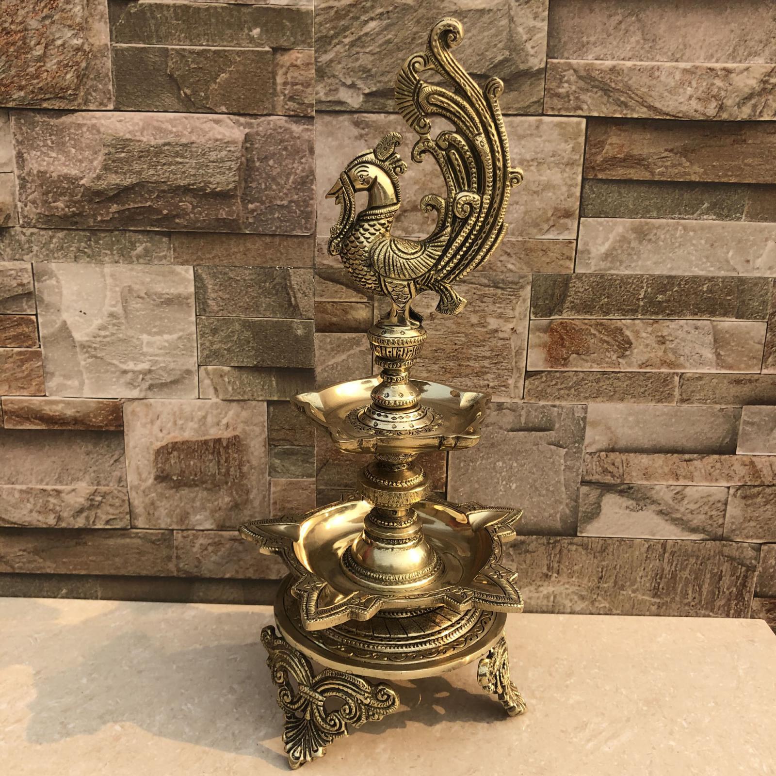 Handcrafted Brass Peacock Diya Lamp for Home Decor and Gifting 7.5*7.5*16.5 Inches