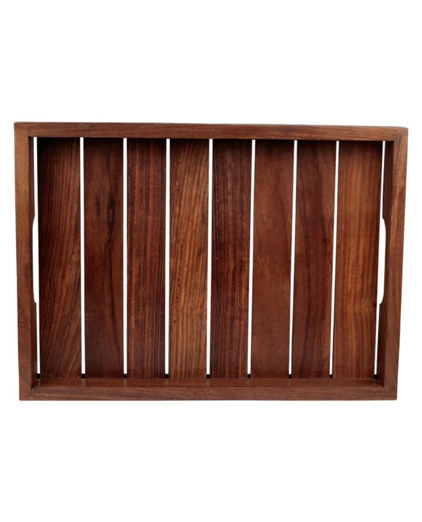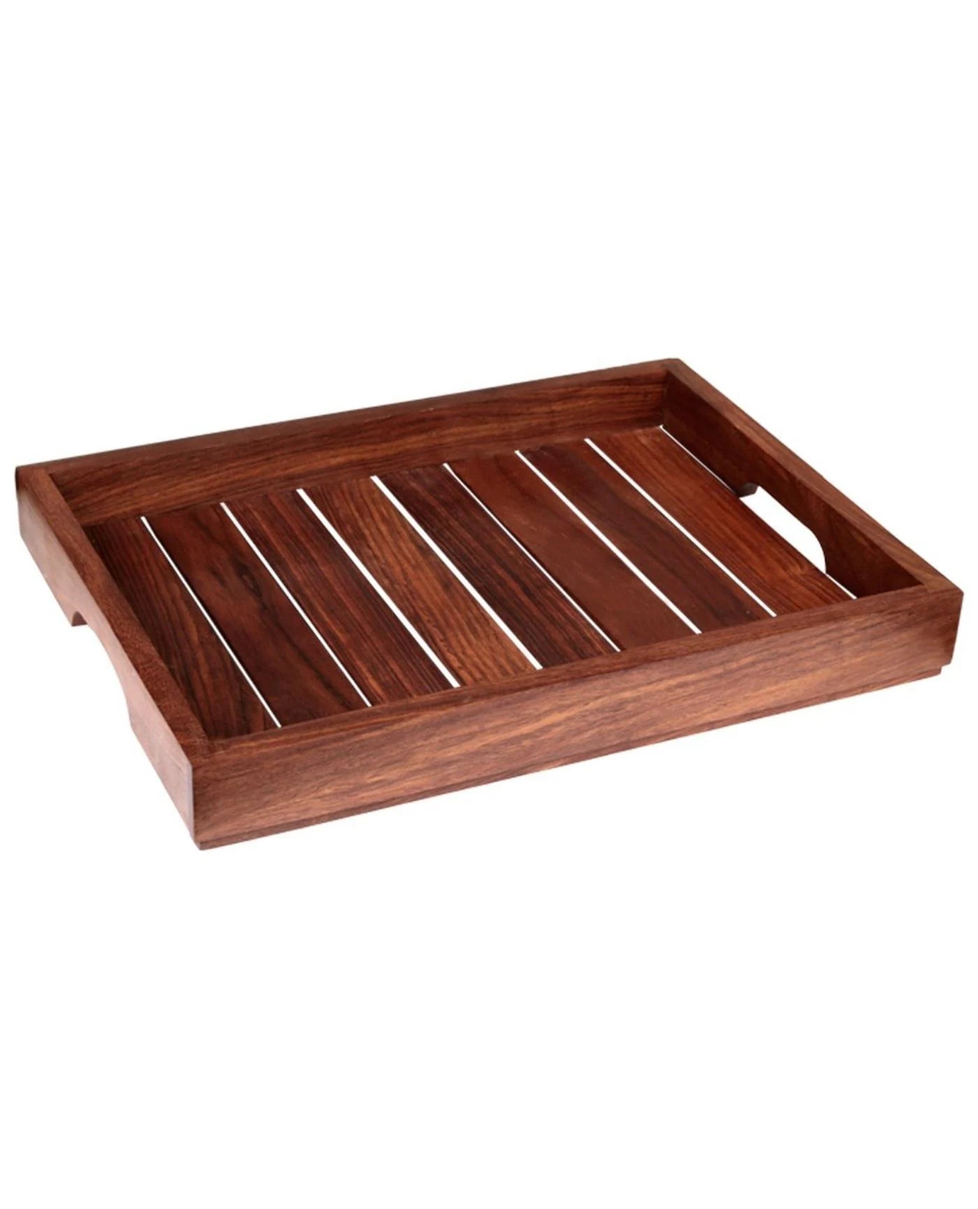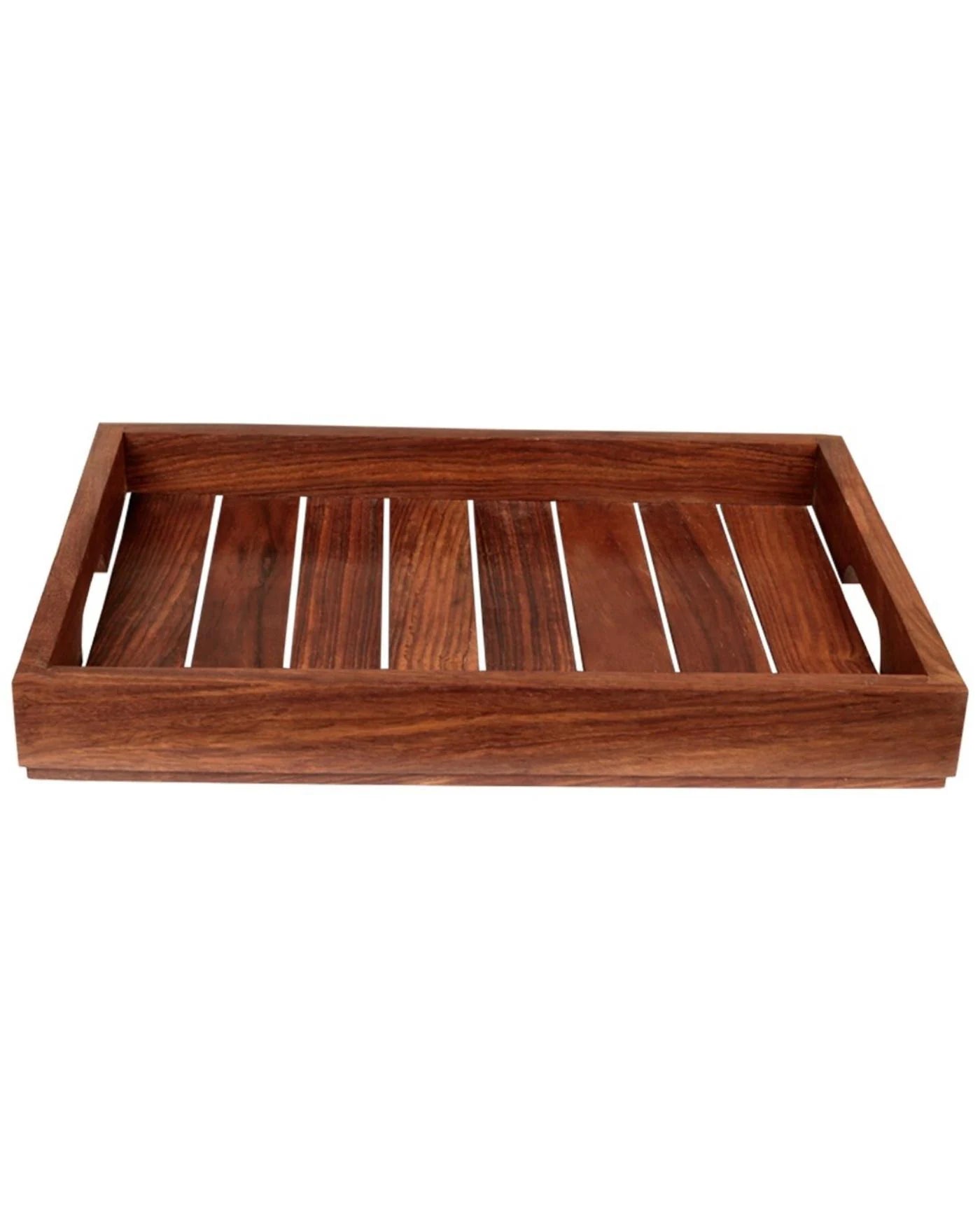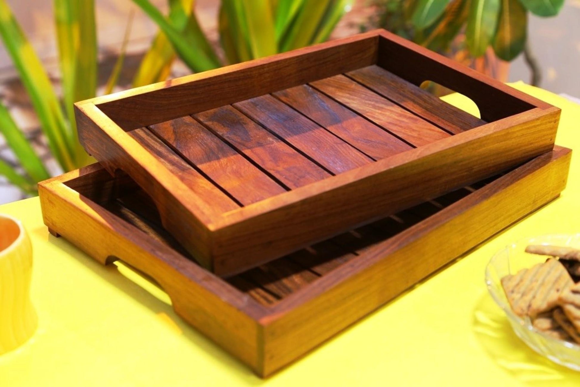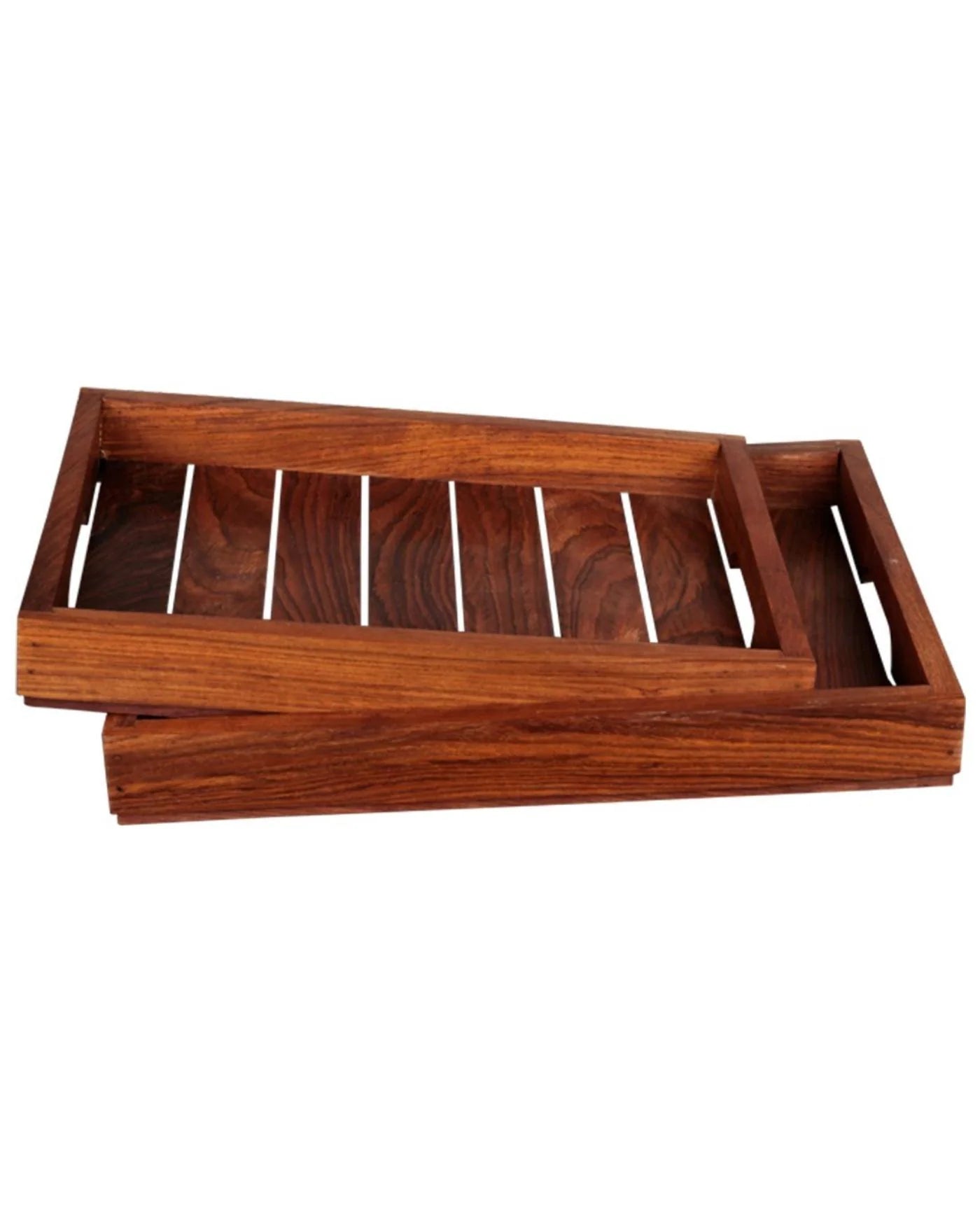 Handcrafted Brown Rectangular Wooden Serving Tray Set Of 2 in Sheesham Wood