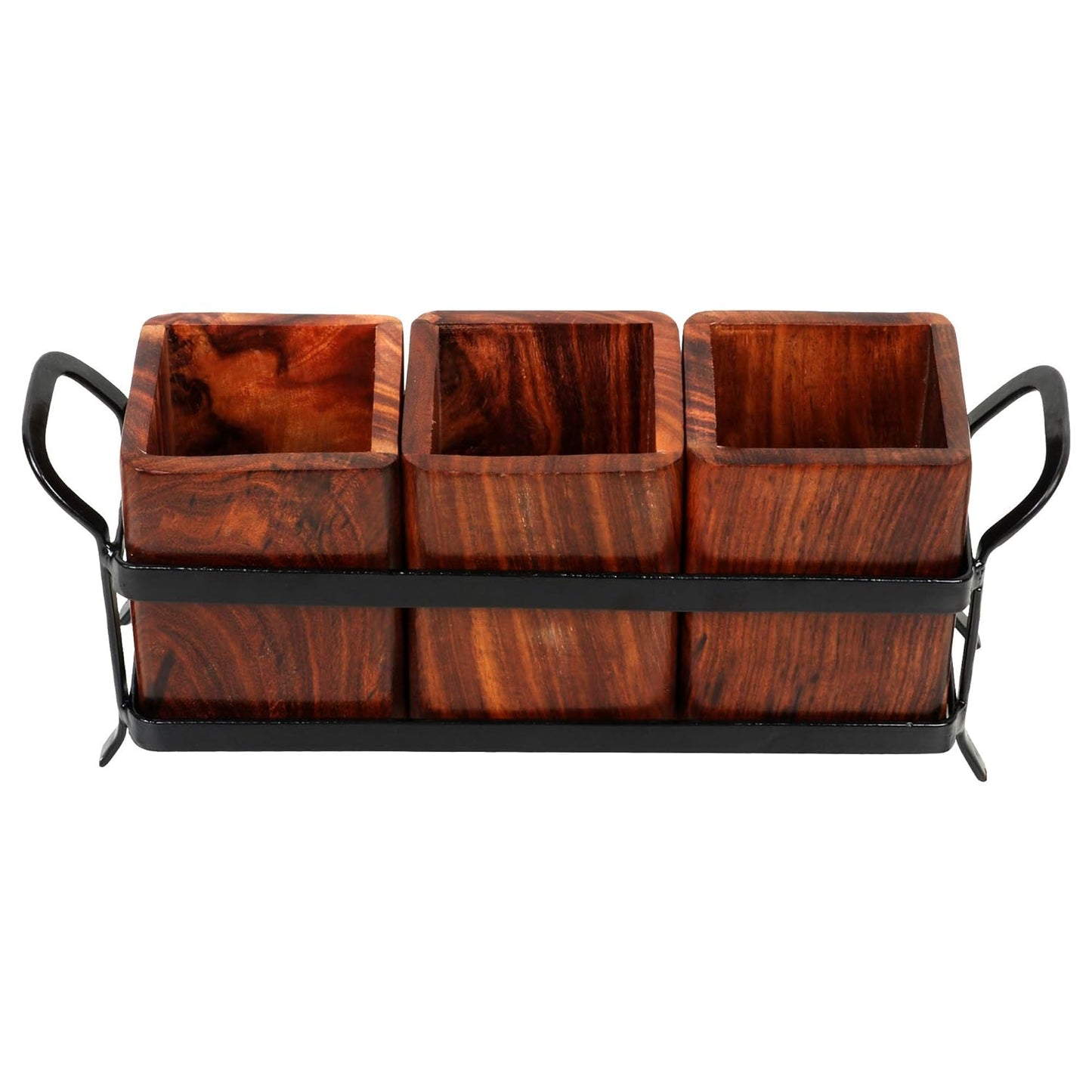 Wood and Wrought Iron Holder for Dining Table, Multipurpose Stand, Table Organizer with 3 Wooden jar