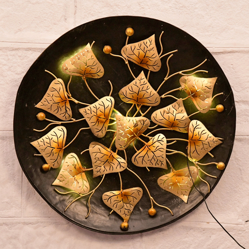 Handcrafted Metal Thaal with Leaf on Led for Wall Decor