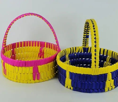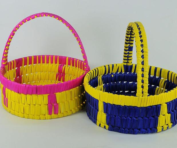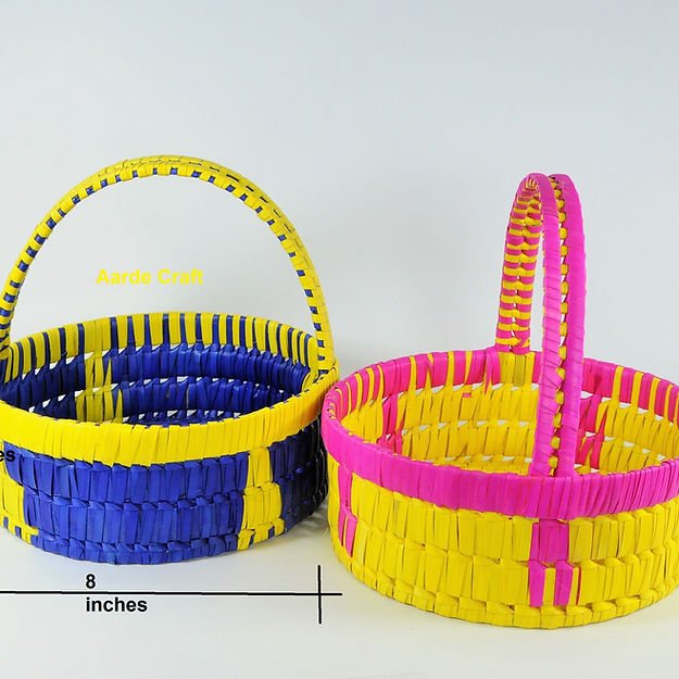 Handcrafted Palm Leaf Pooja Basket (2 pieces). Best gifting bowl for Festival Celebration at Home The perfect return-gift item for any celebration at your home. Made by a self-help-women group using non-toxic colors (that are used in Children's color pencils). Palmyra Tree leaves gift item enhances your concern towards nature.
