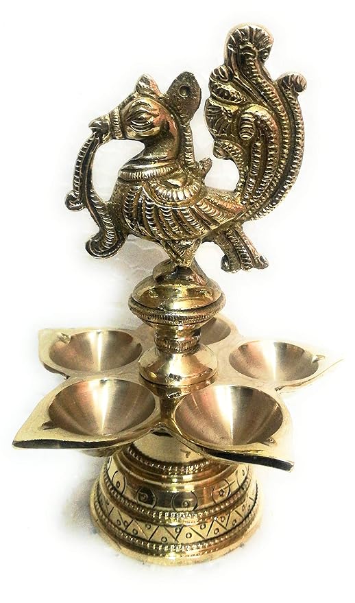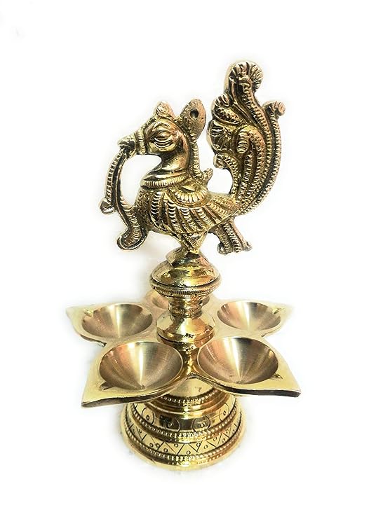 Brass Diya is a traditional spiritual items. It can be used with oil to light up your decoration or home and it can also be hanged with chain and small bells which sounds good when hanging. This handmade metal craft is unique for gifts and decoration. Ring in prosperity and good fortune to your home by getting this peacock diya . This beautiful brass diya is made of brass and features peacock on the top and have a 5 oil wick diya at the bottom. This can be a good gifting option for house warming parties too.