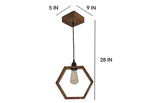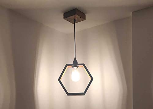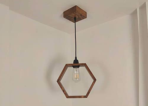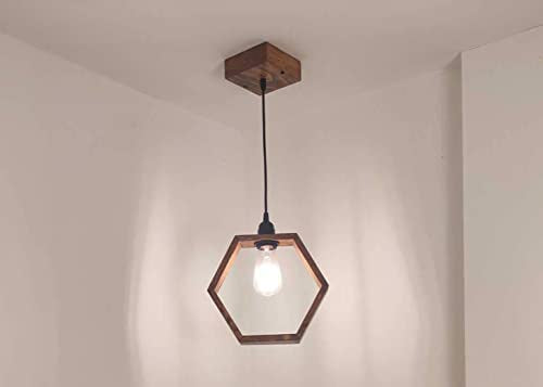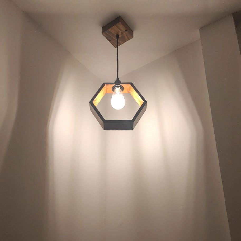 Hexagonal Modern Geometric Hexagon Shape Minimalist Style Ceiling Lamp Hanging Solid Wood Pendant Light for Living Room Balcony.