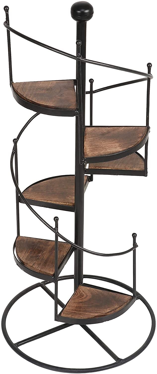 Iron & Wooden Spiral Staircase Planter | Corner Stand – 26x10 Inches Stylish & Functional | Space-Saving Corner Planter Stand