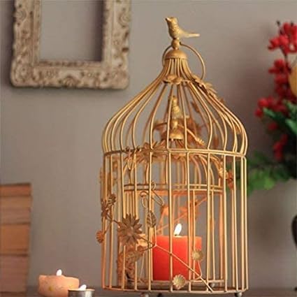 Charming Birdcage Design: The birdcage-inspired design evokes a sense of nostalgia and charm. It features a detailed cage structure with an open door or latch to place candles inside, adding a whimsical touch to any space.