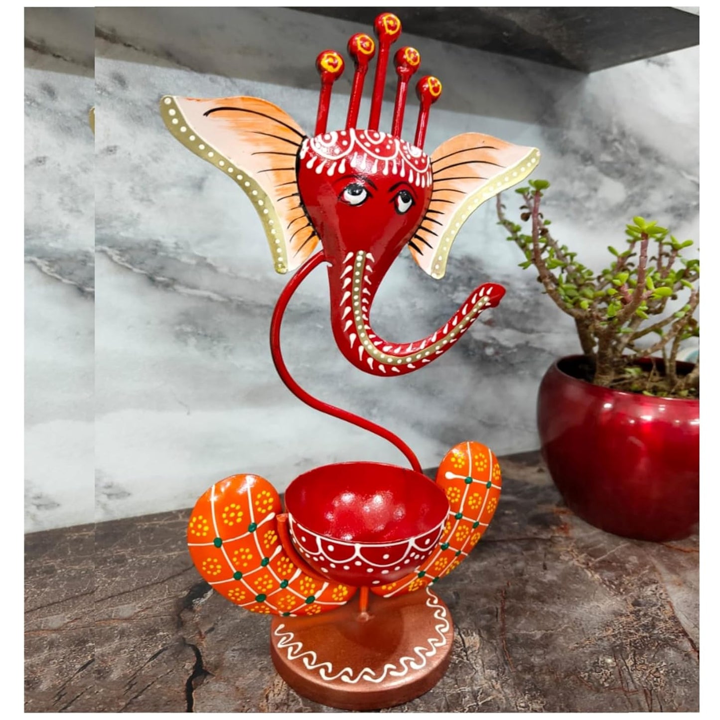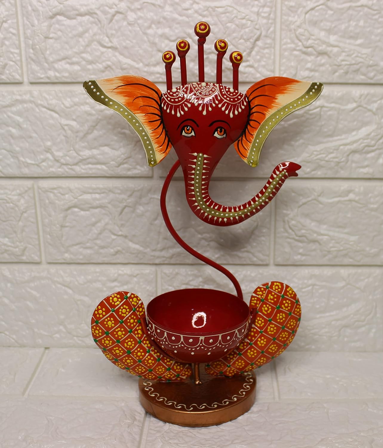 - Package Includes: 12-inch Iron Metal Lord Ganesh Tealight Candle Holder Table Decor Showpiece.