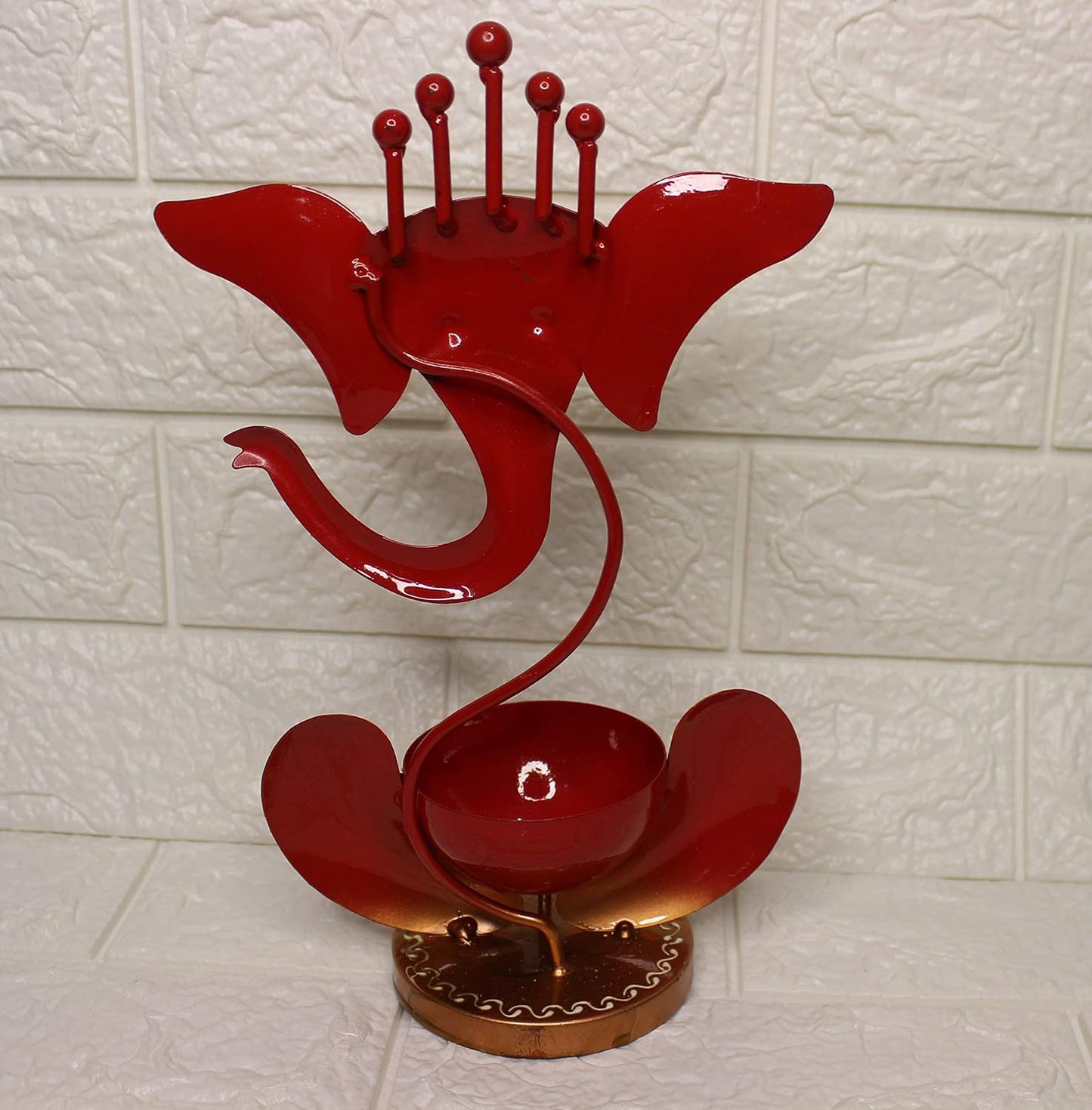 Iron Metal Lord Ganesh Tealight Candle Holder Red, 12 Inch