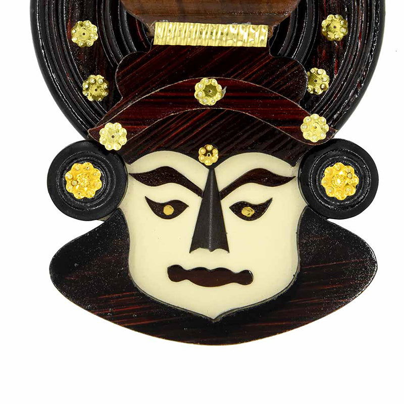 The wooden kathakali face wall hanging showpiece can be hung on any wall in the house. It will suit the living room, drawing room, bedroom, lobby, and entrance.