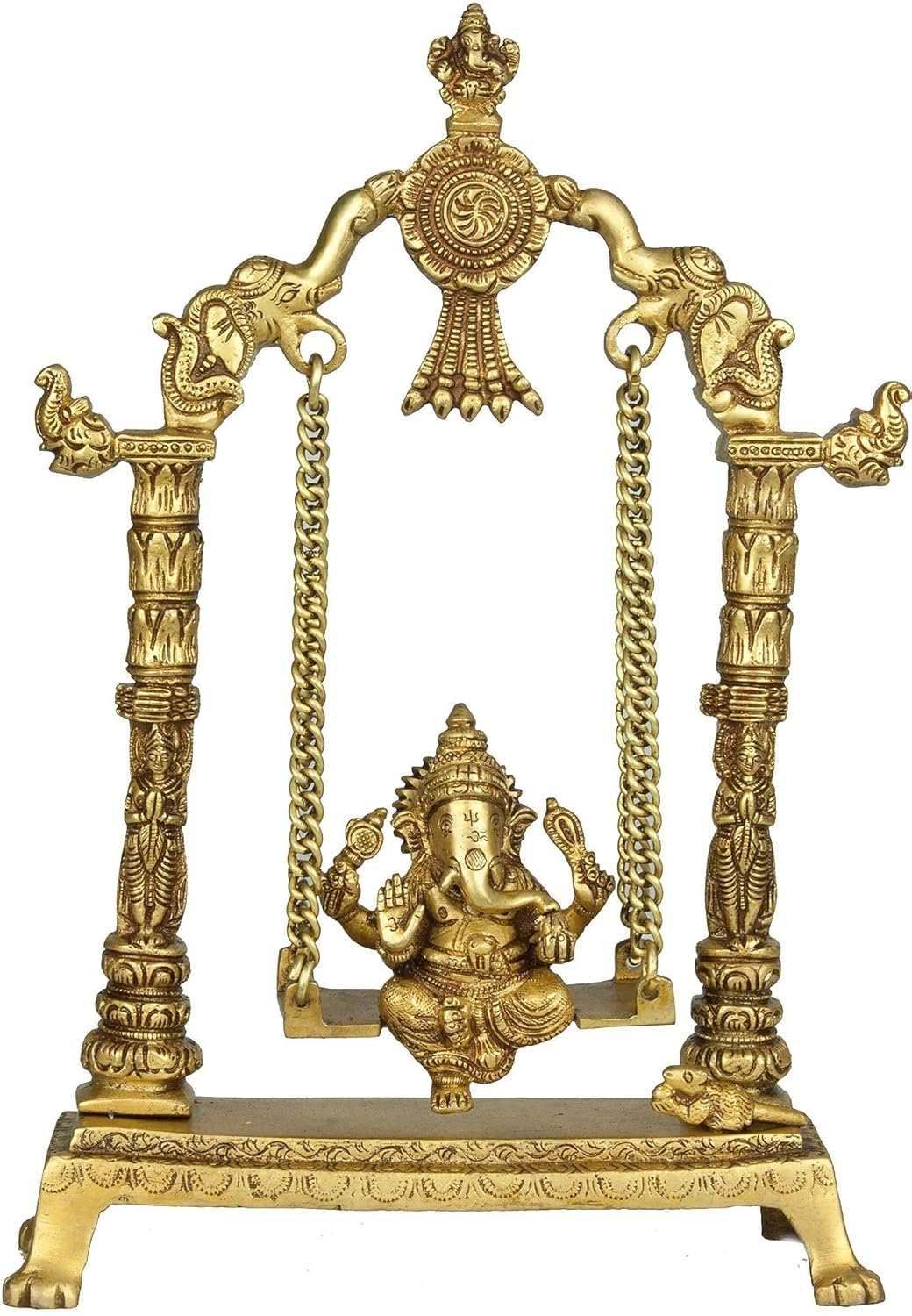 The Lord Ganesha on a Swing 12 Inches Sculpture is an exquisite piece of art that beautifully captures the playful and joyful spirit of Lord Ganesha.