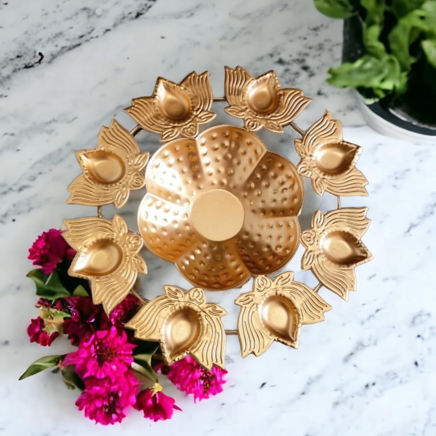 - Can hold diya lamps and be used as a base for rangoli art