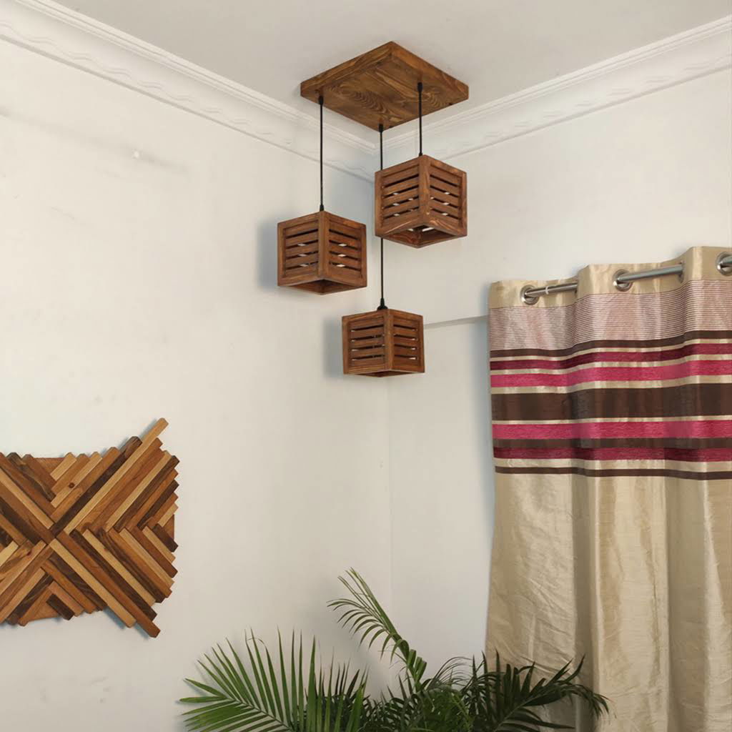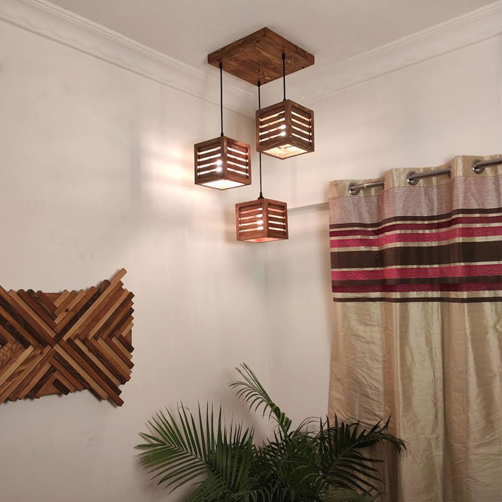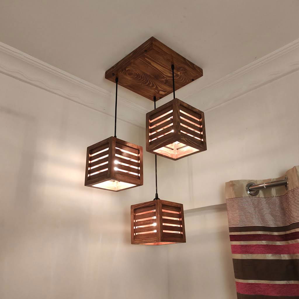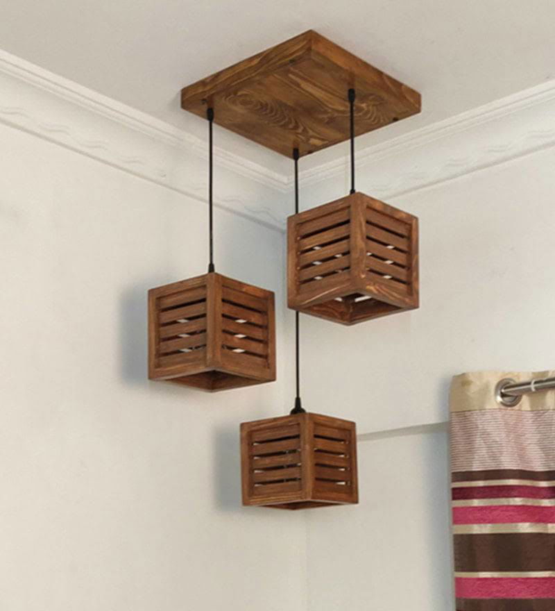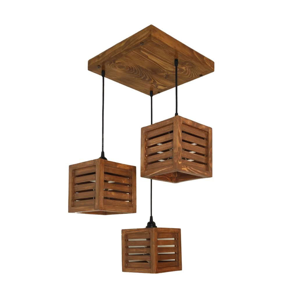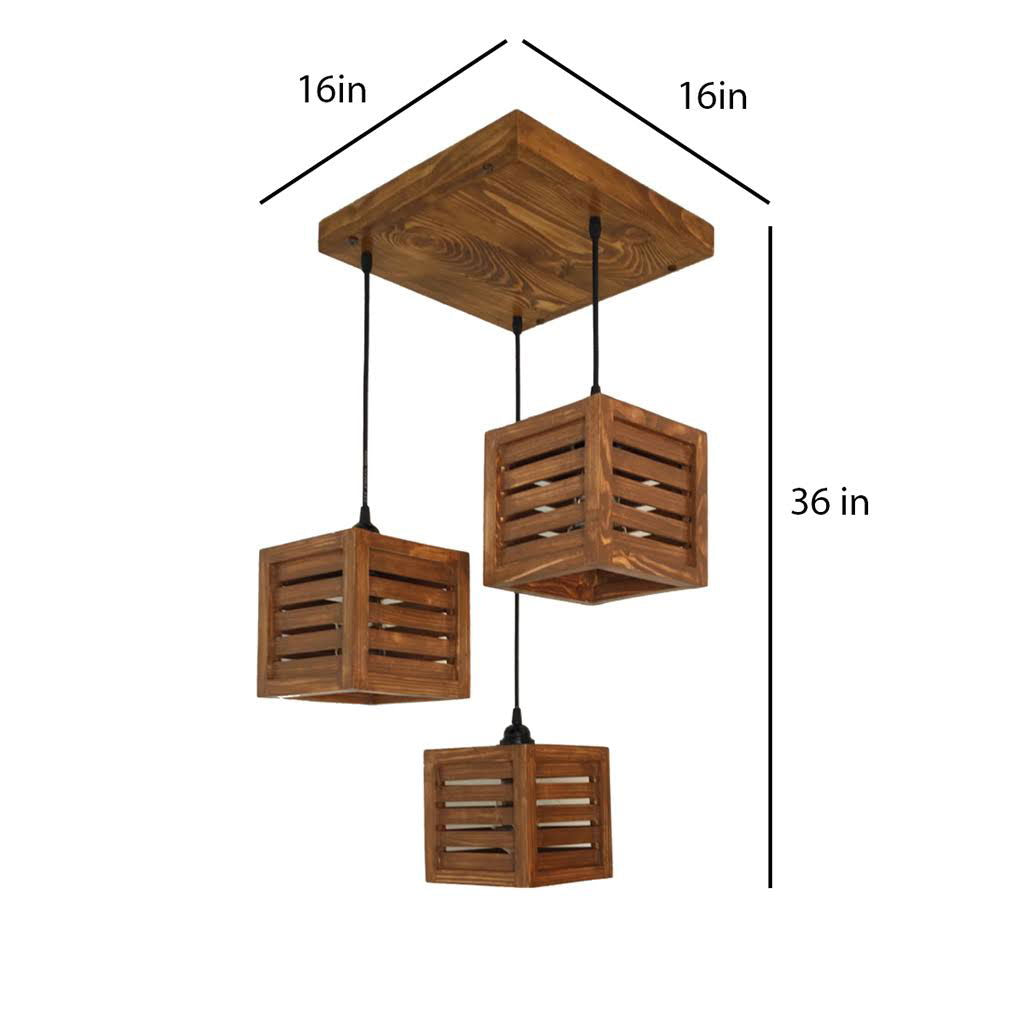 Lyon Brown Solid Wood 3 Light Cluster For Hanging Lights