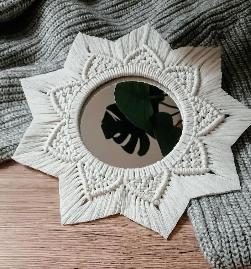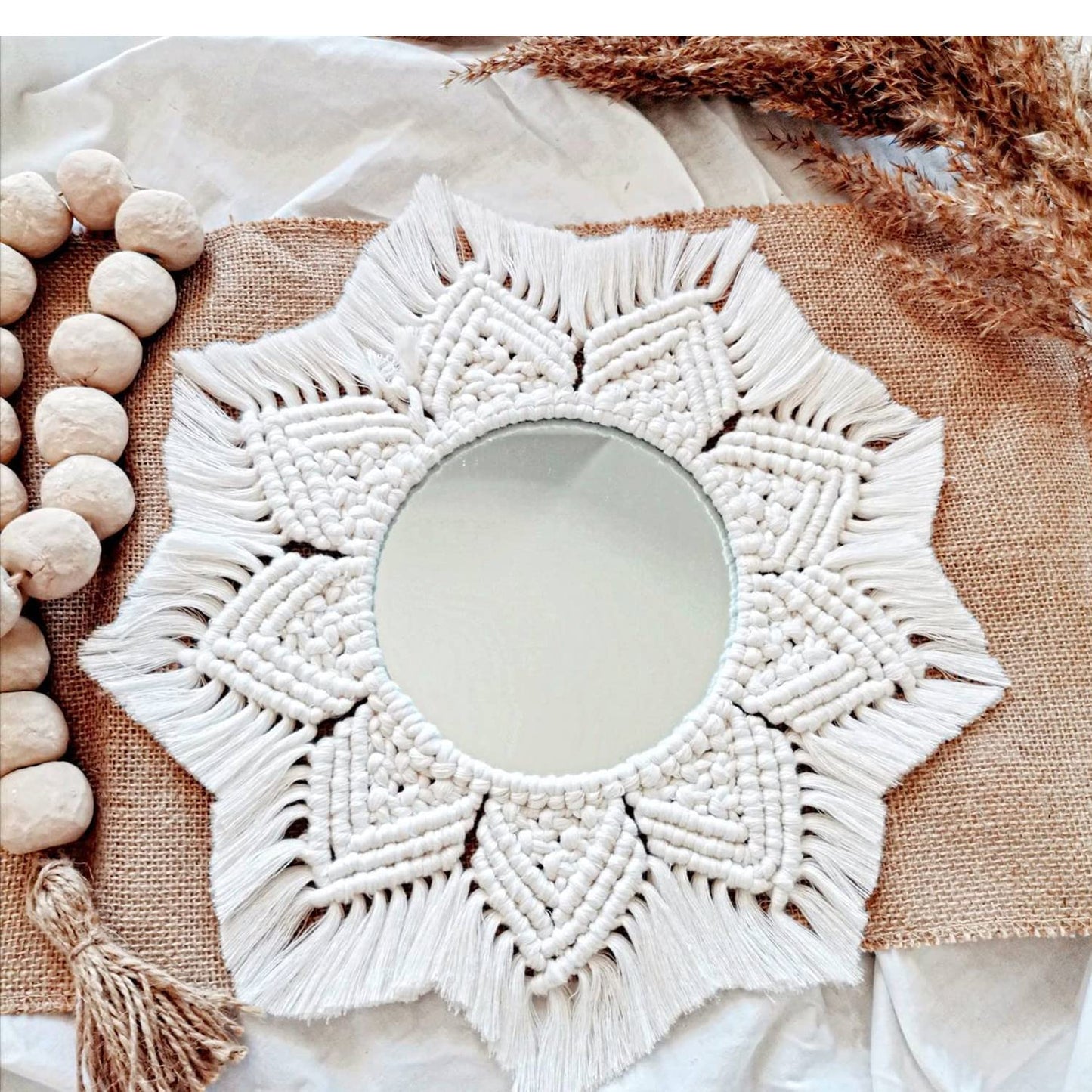 A macrame wall mirror is a perfect blend of functionality and boho-chic style, ideal for adding texture and visual interest to your home decor. The intricate macrame designs framing the mirror bring an artisanal touch, while the reflective surface enhances light and creates the illusion of a larger space.