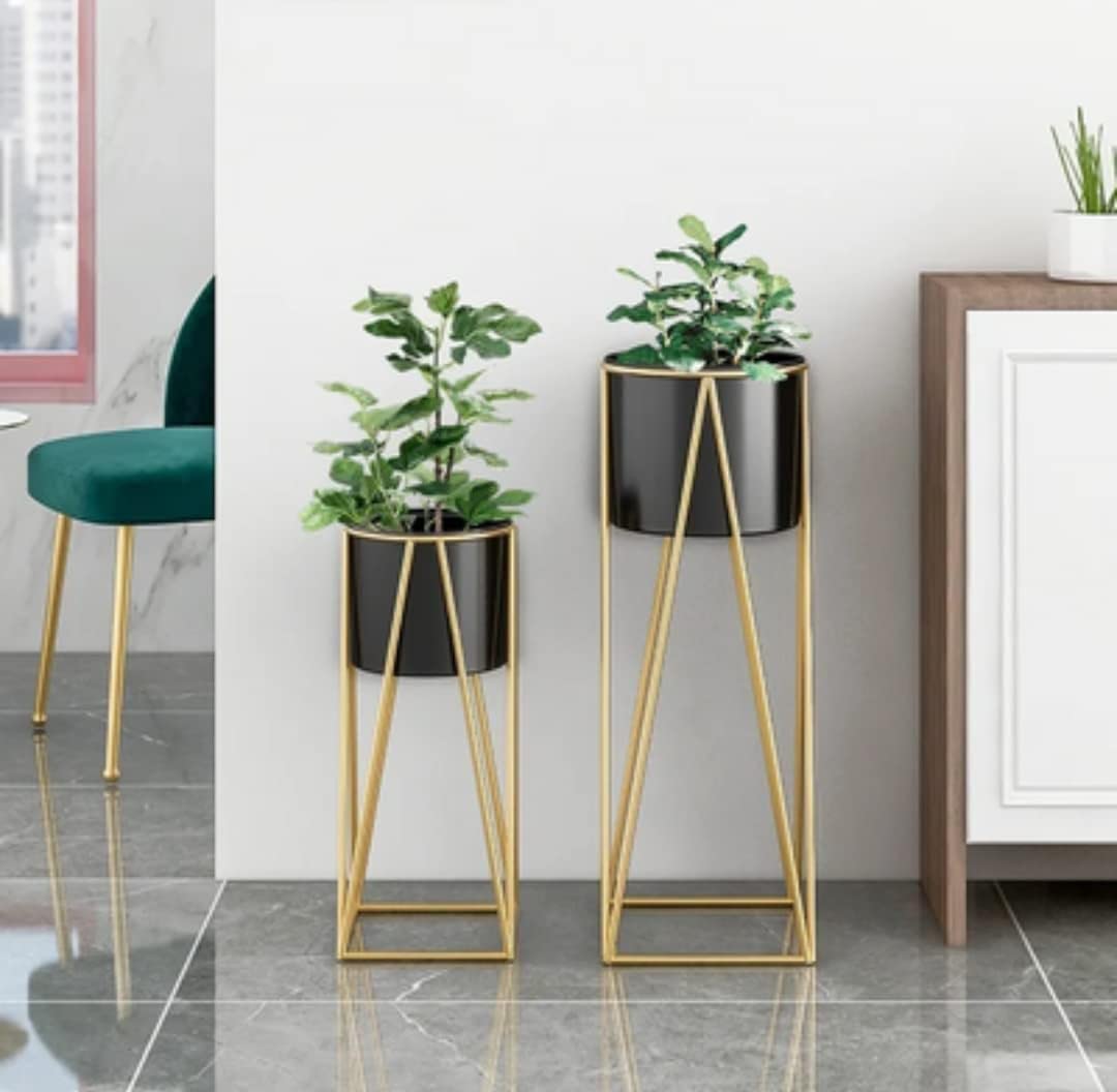 The Metal Floor Tall Planter Holder with Stand is a stylish and practical piece designed to elevate the aesthetic of your indoor or outdoor spaces.