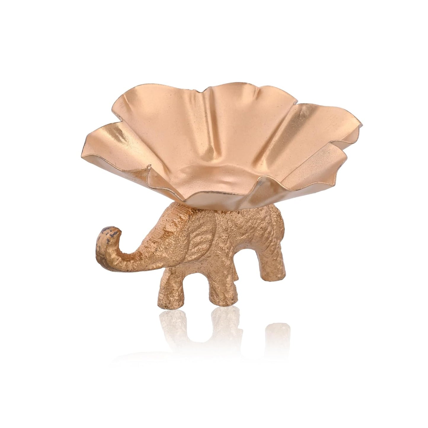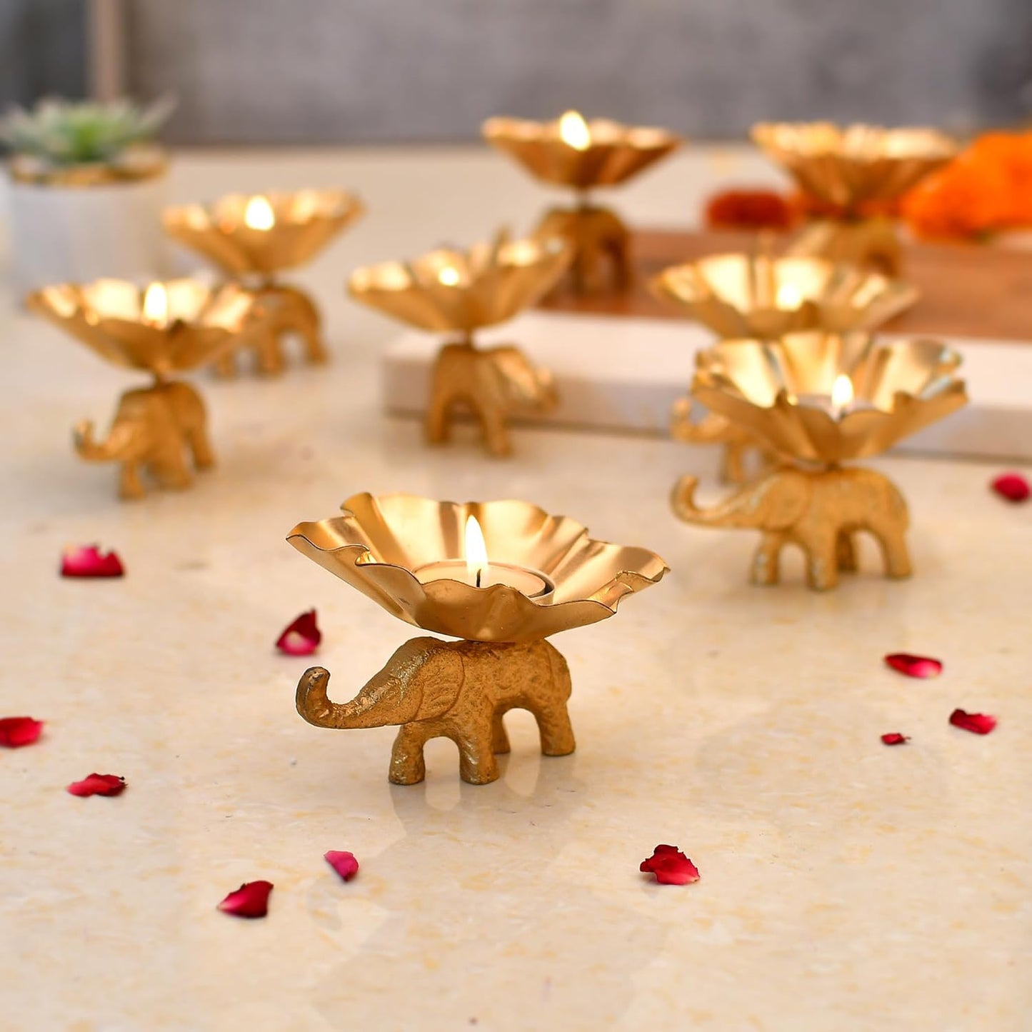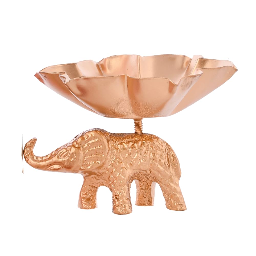 Elephant Base: The base of the candle holder features a detailed, hand-crafted elephant, symbolizing wisdom, strength, and good fortune. The elephant is intricately sculpted, with fine attention to detail, from its raised trunk to the intricate patterns on its body. The sturdy elephant base supports the flower-shaped holder above, making this piece both functional and artistic.