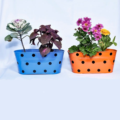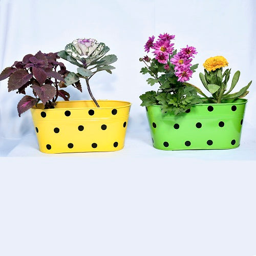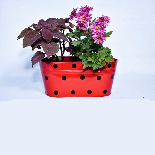 This Metal Oval Dotted Planter is the perfect addition to your garden or home.