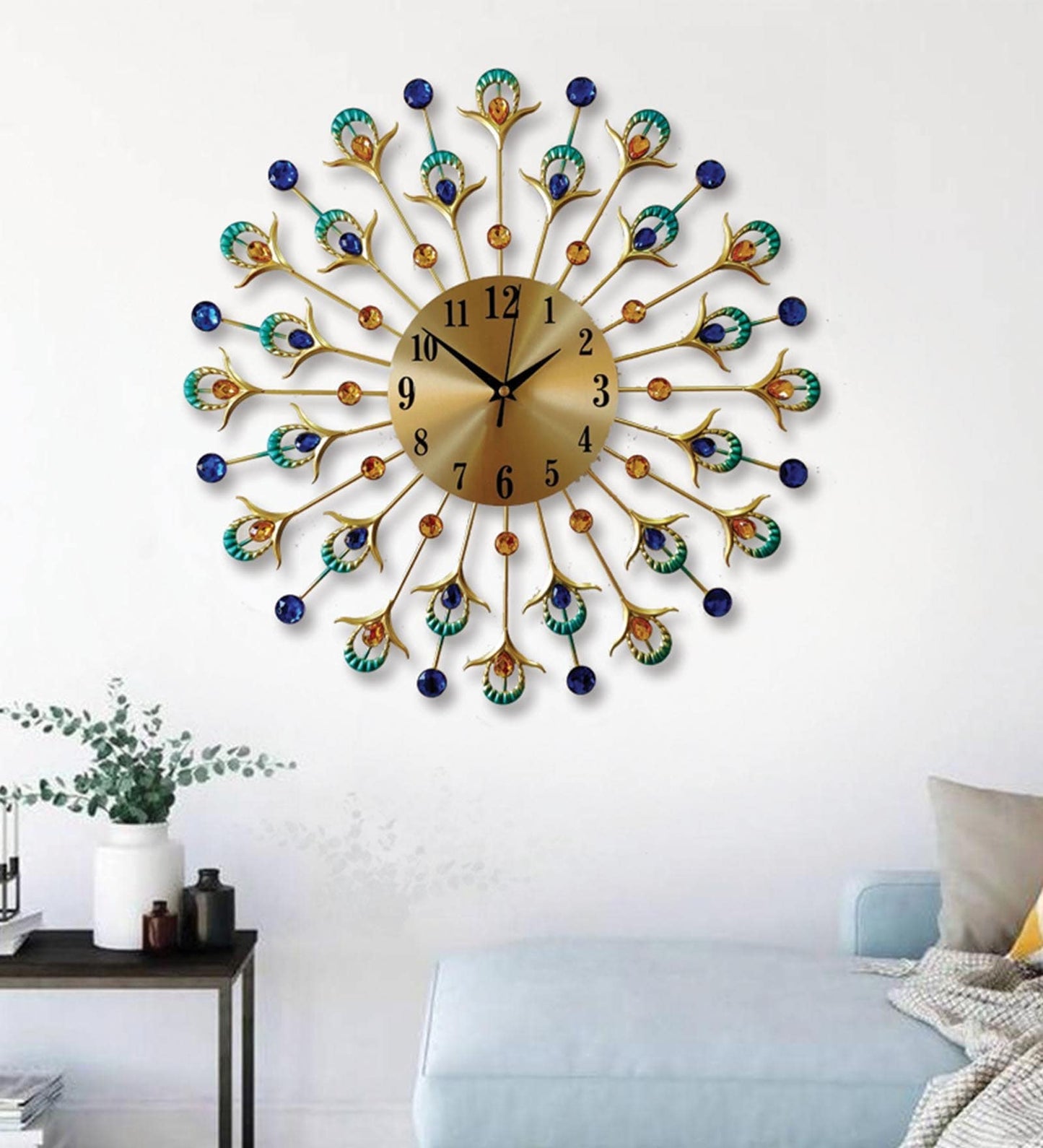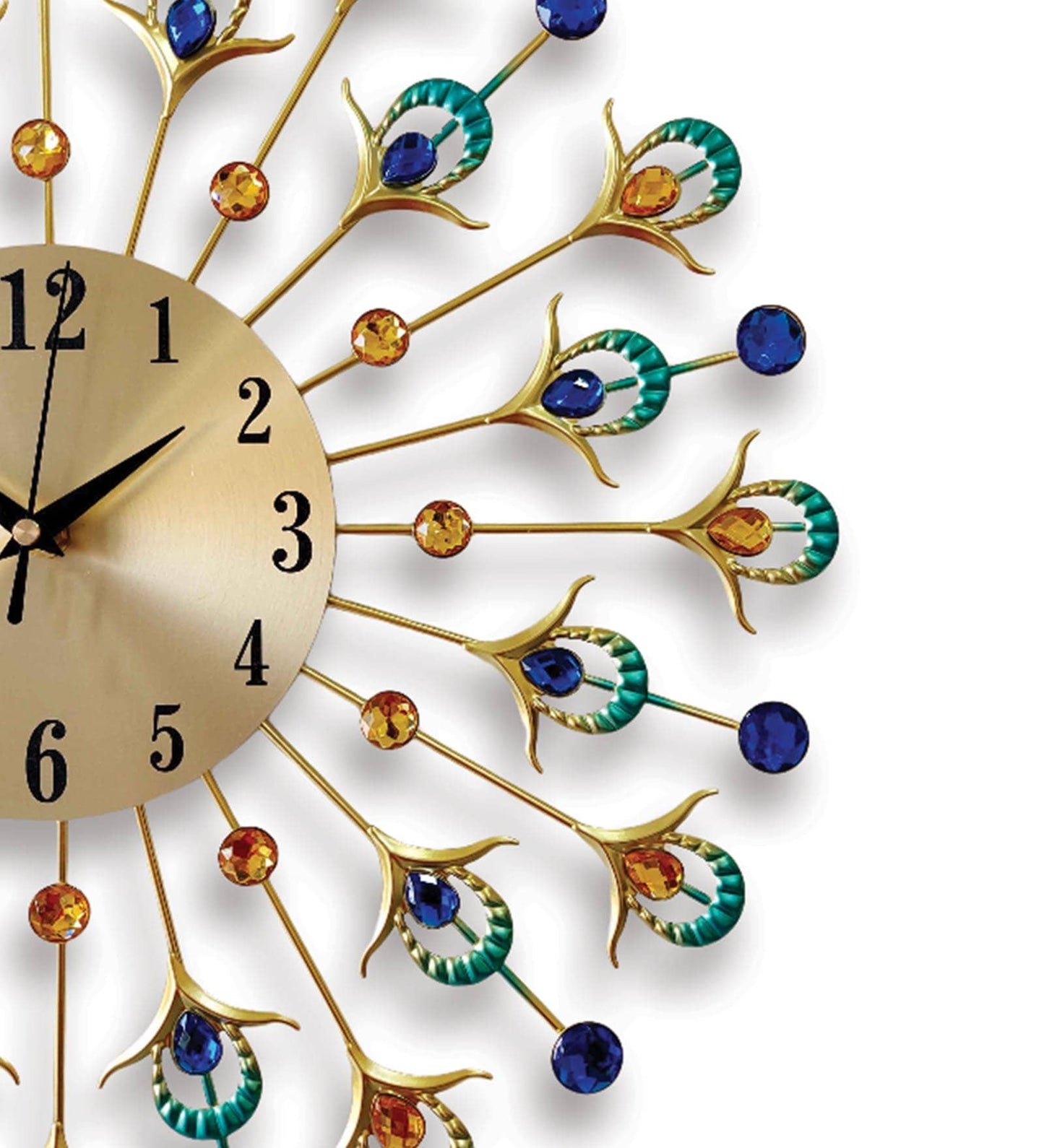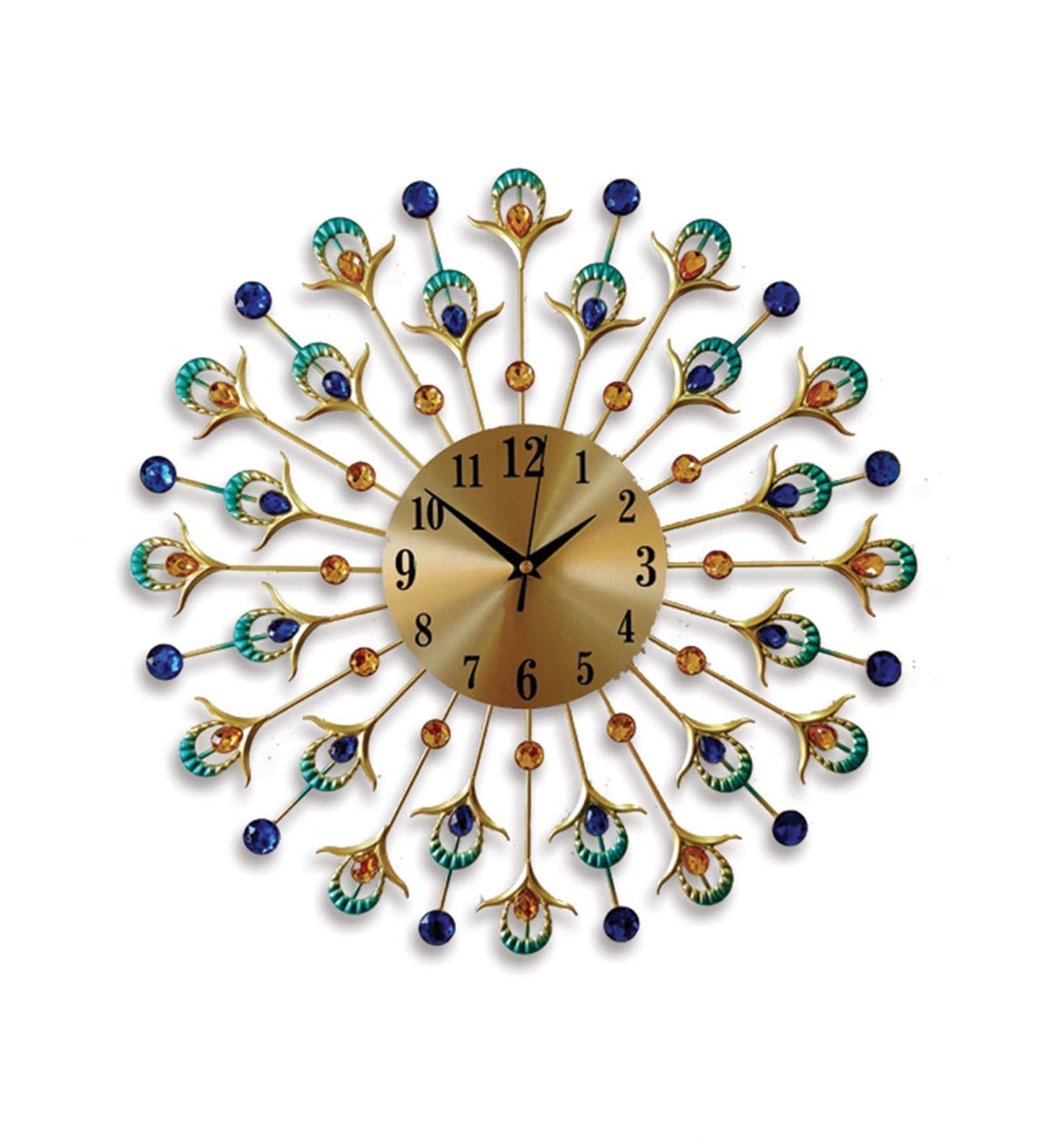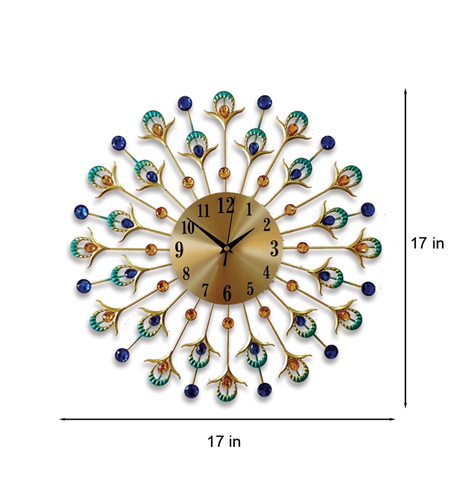 The Peacock Gem Stone Feather Wall Clock is designed considering the modern outlook with a touch of modern look. which gives an elegant and contemporary feeling. Designed for all types of rooms like bedrooms living rooms study room halls kitchens and dining. For office rooms like conference room reception. The product can be used for outdoor use also, like house clock towers, gardens, sports stadiums and more. The machine is soundproof or we can call soundless/noiseless with the 3 blades showing hour minute and second movement which helps you to sleep better during night without disturbance. From small to large families this clock will serve better in terms of look and durability.