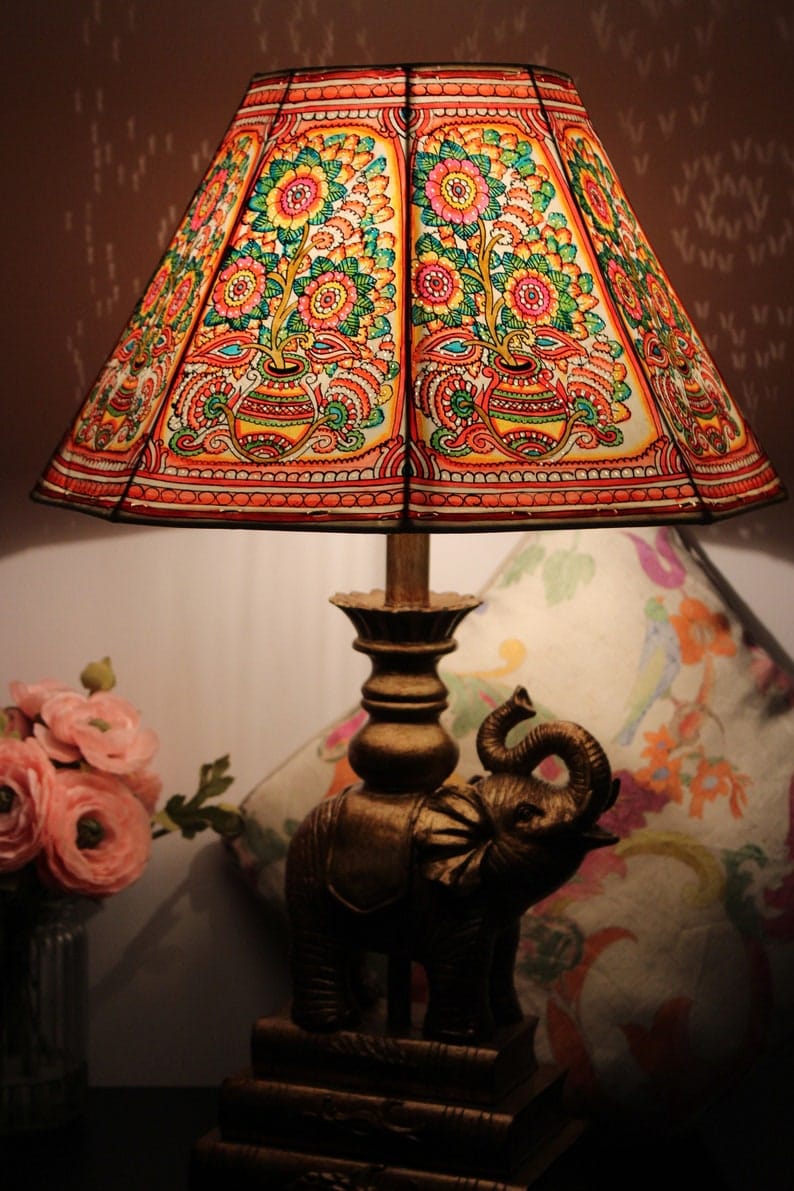 Nimmalakunta Tholu Bommalata Flower Pot Design Leather Lamp Shade